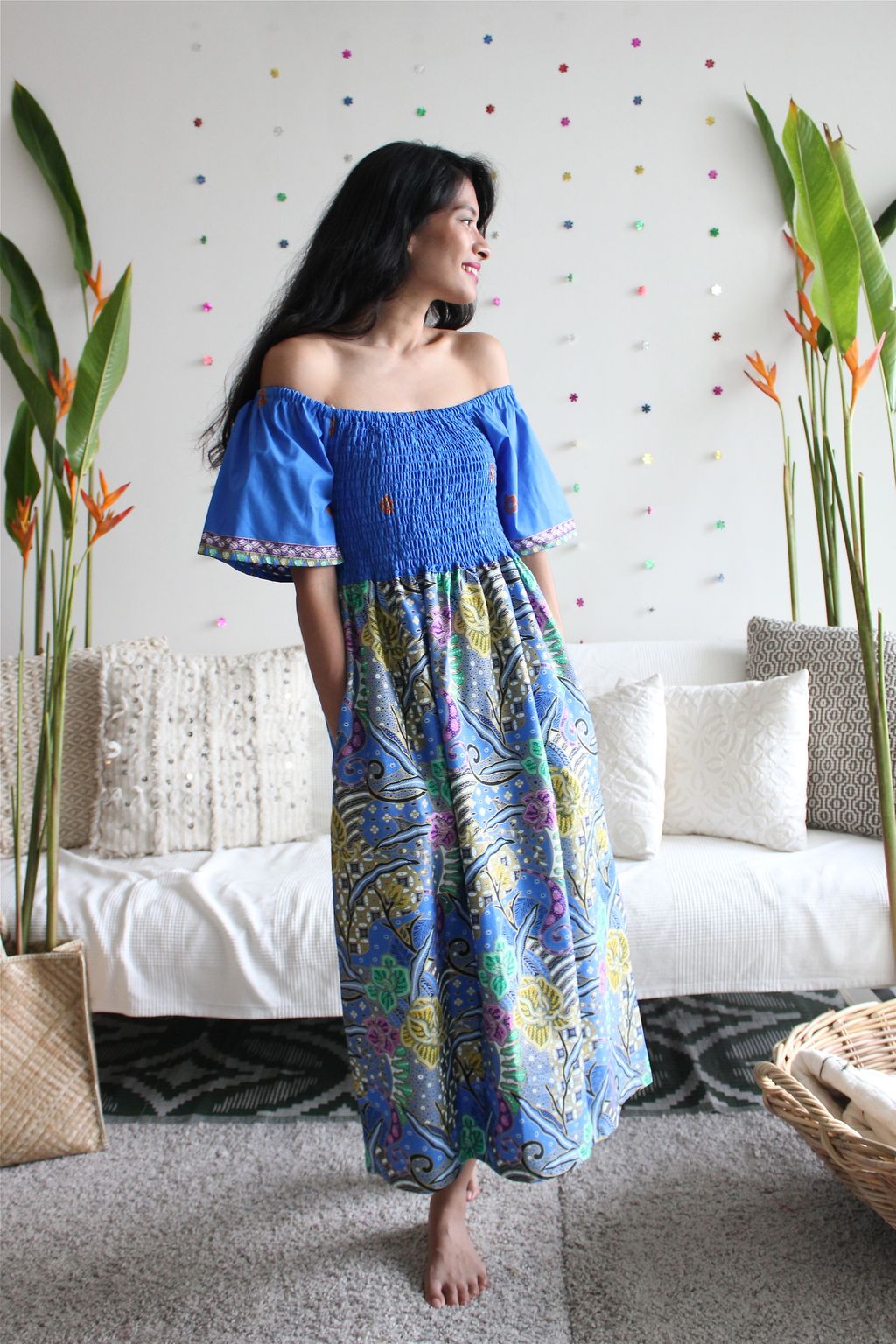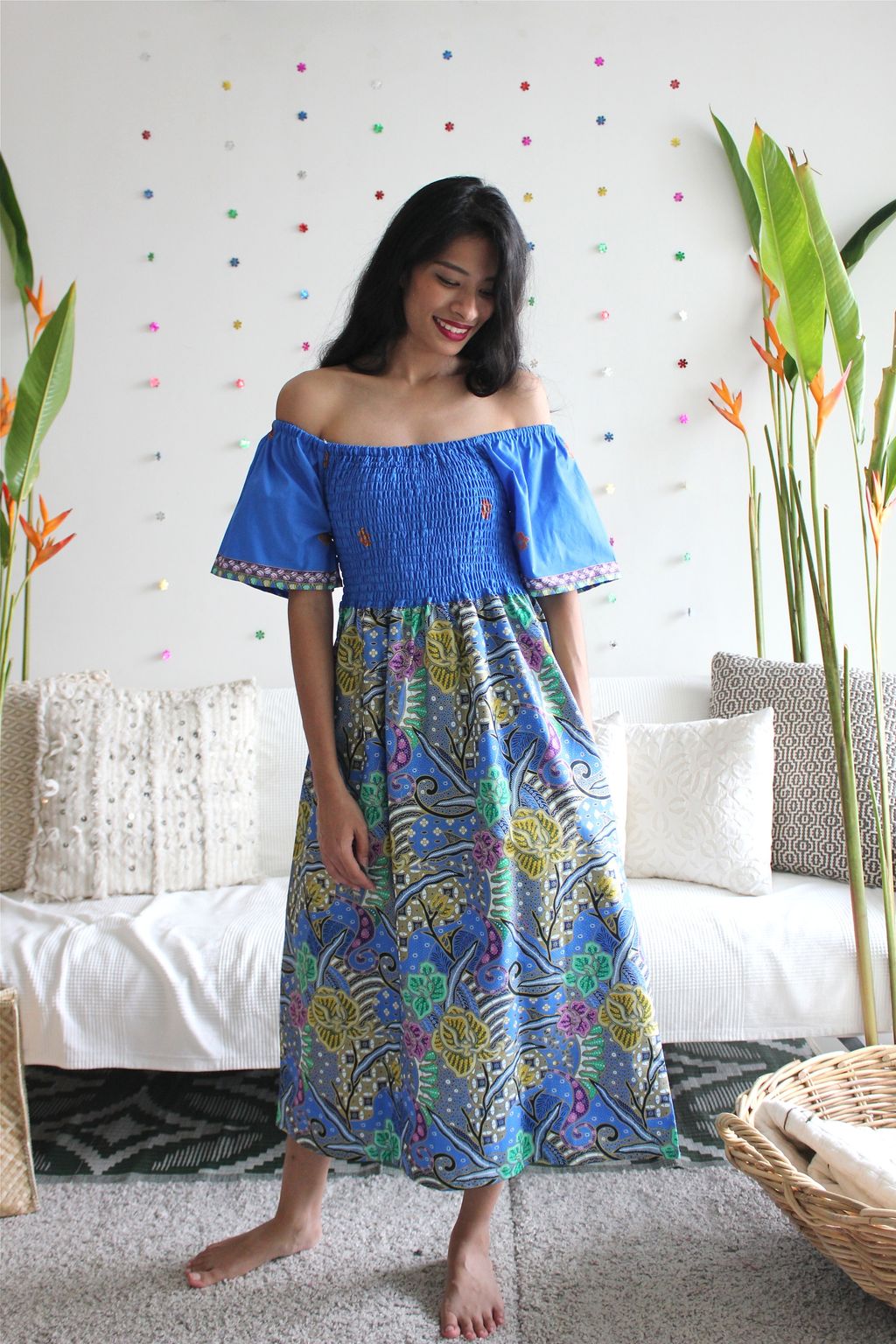 Hello Puteri of the Tropics! This gorgeous dress is really breezy and comfortable to wear! It is made of 100% soft gold-line cotton batik. This dress is labor intensive and handmade in our studio, just as where all our other garments are made with love. Only one of each color made, so if this beau is calling your name, do put it in your cart and check it out :)!