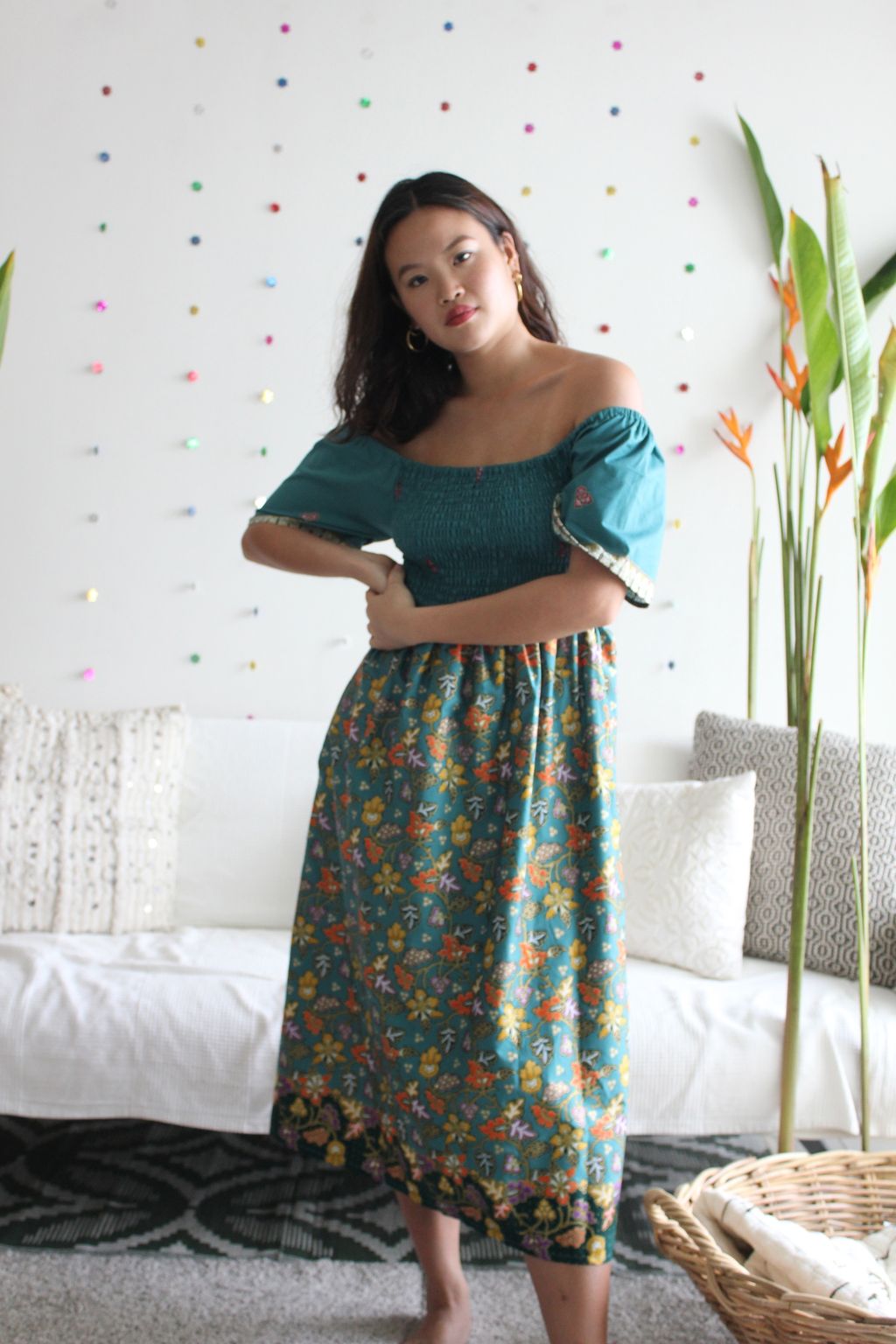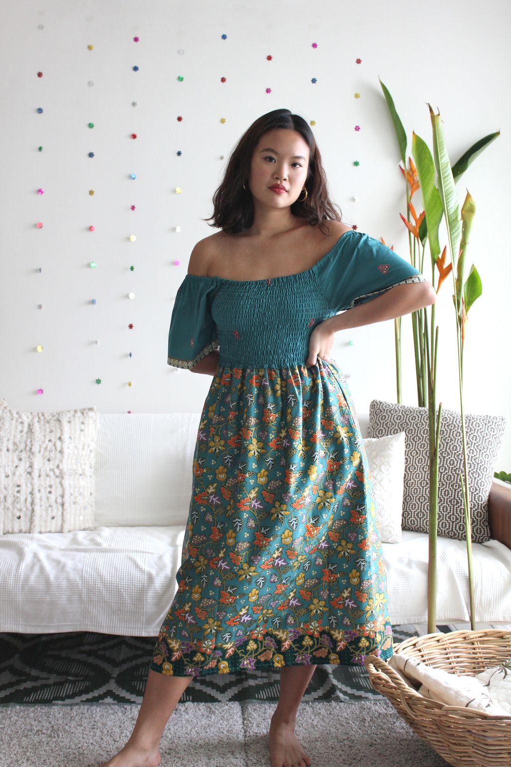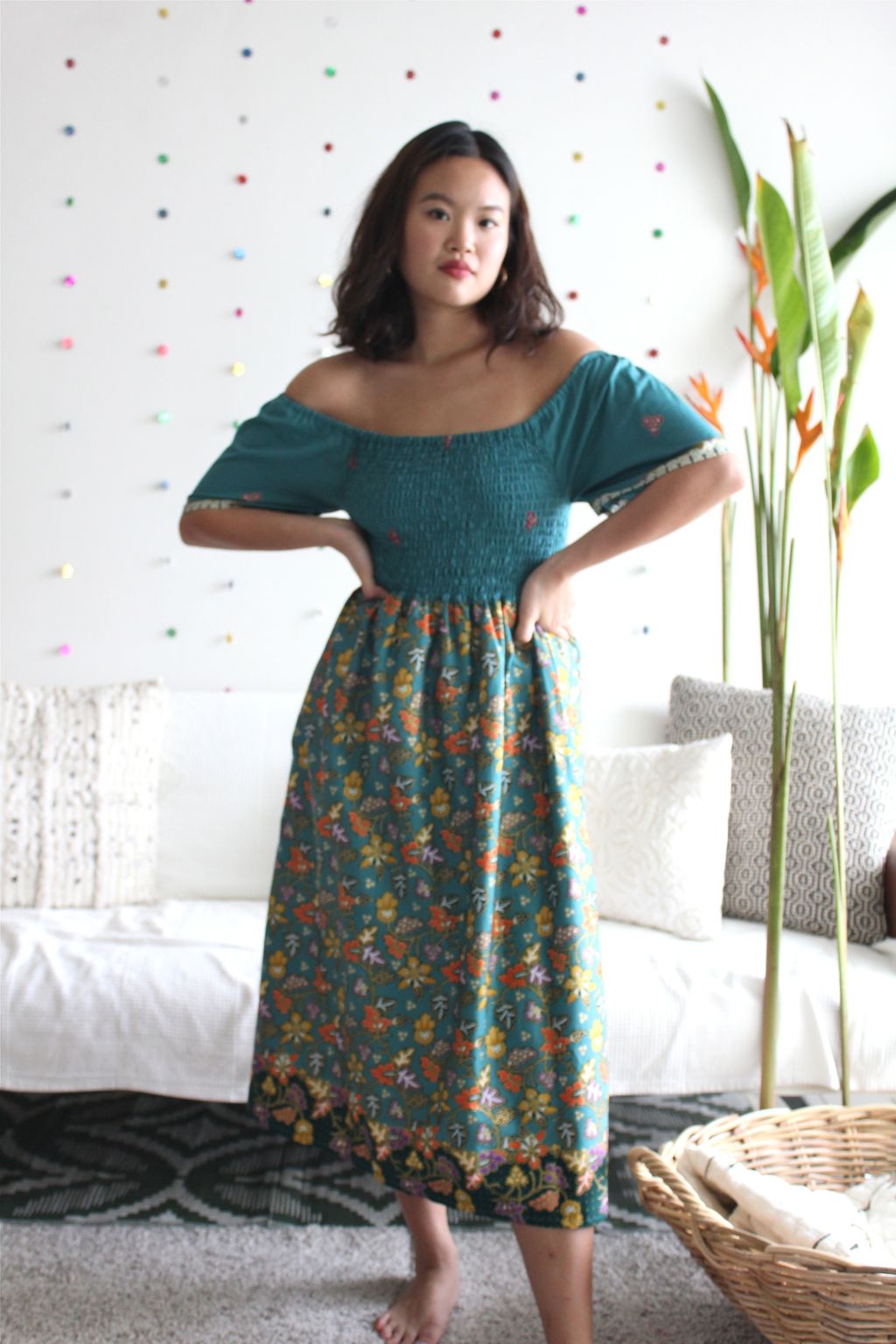 Hello Puteri of the Tropics! This gorgeous dress is really breezy and comfortable to wear! It is made of 100% soft gold-line cotton batik. This dress is labor intensive and handmade in our studio, just as where all our other garments are made with love. Only one of each color made, so if this beau is calling your name, do put it in your cart and check it out :)!