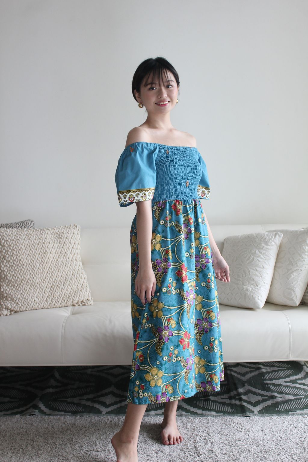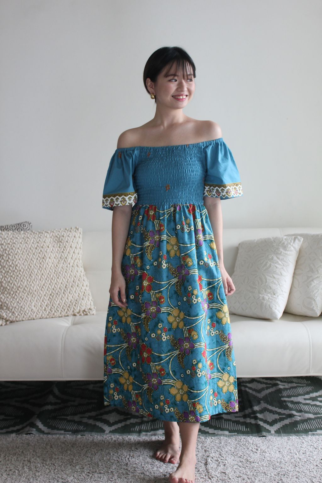 Hello Puteri of the Tropics! This gorgeous dress is really breezy and comfortable to wear! It is made of 100% soft gold-line cotton batik. This dress is labor intensive and handmade in our studio, just as where all our other garments are made with love. Only one of each color made, so if this beau is calling your name, do put it in your cart and check it out :)!