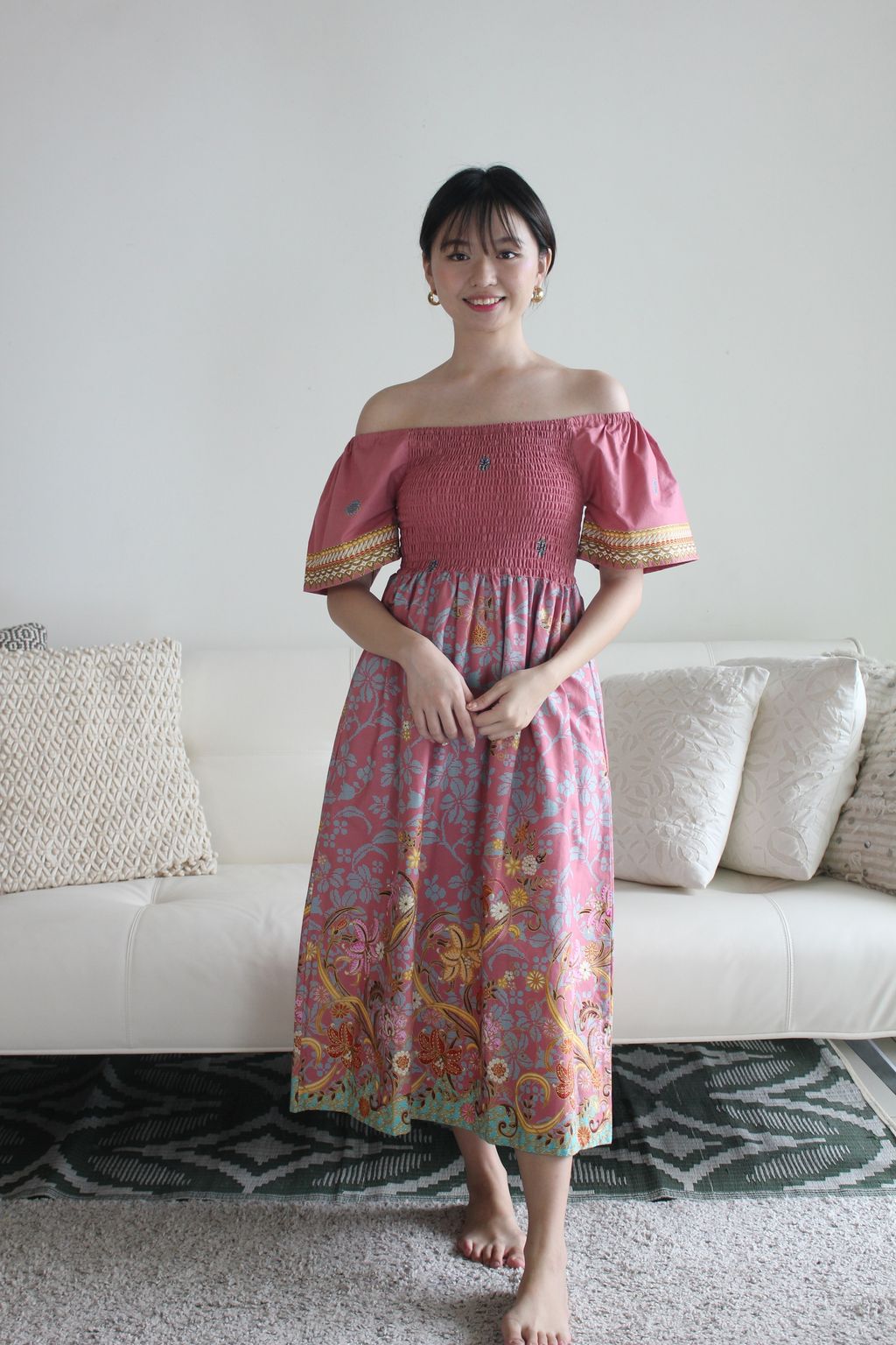 Hello Puteri of the Tropics! This gorgeous dress is really breezy and comfortable to wear! It is made of 100% soft gold-line cotton batik. This dress is labor intensive and handmade in our studio, just as where all our other garments are made with love. Only one of each color made, so if this beau is calling your name, do put it in your cart and check it out :)!