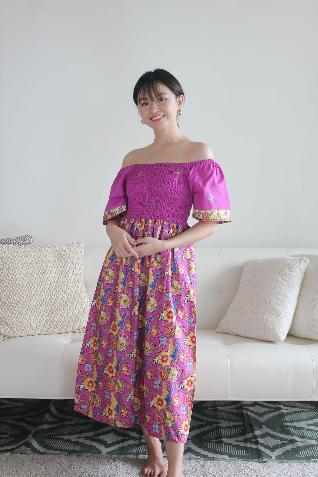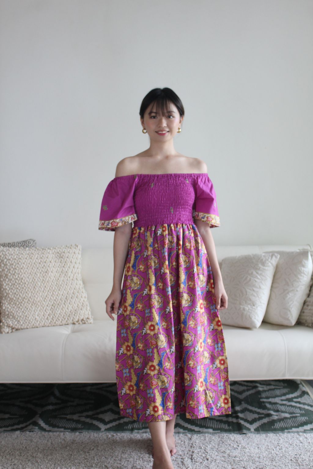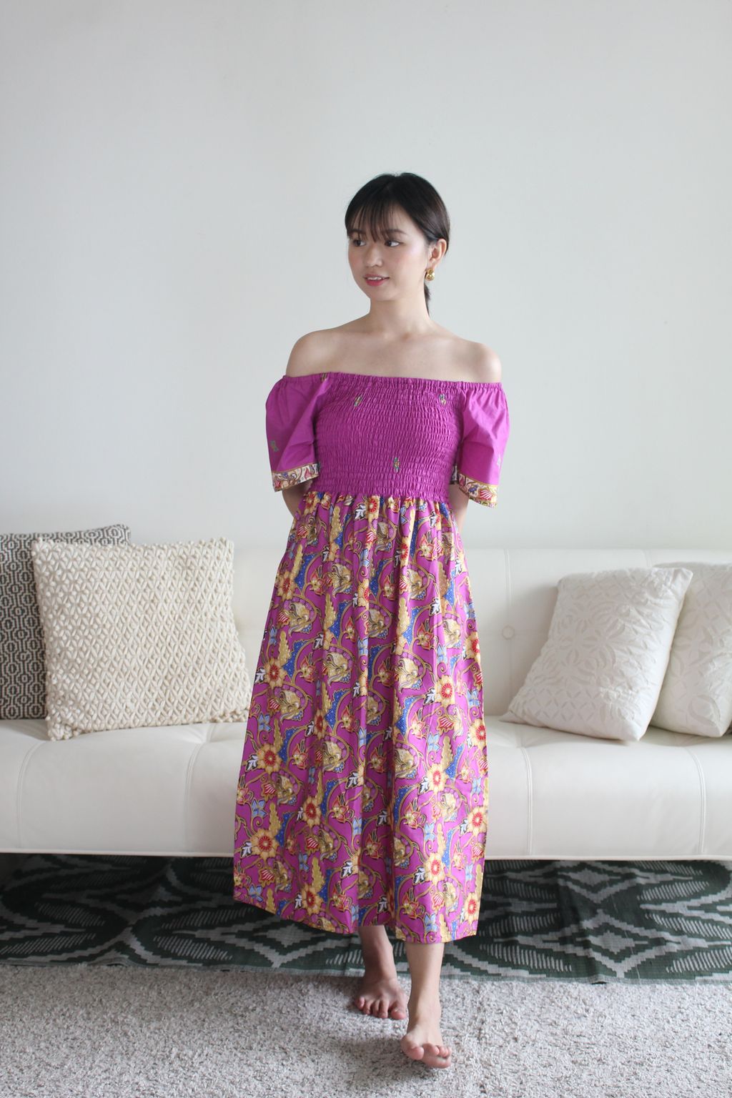 Hello Puteri of the Tropics! This gorgeous dress is really breezy and comfortable to wear! It is made of 100% soft gold-line cotton batik. This dress is labor intensive and handmade in our studio, just as where all our other garments are made with love. Only one of each color made, so if this beau is calling your name, do put it in your cart and check it out :)!