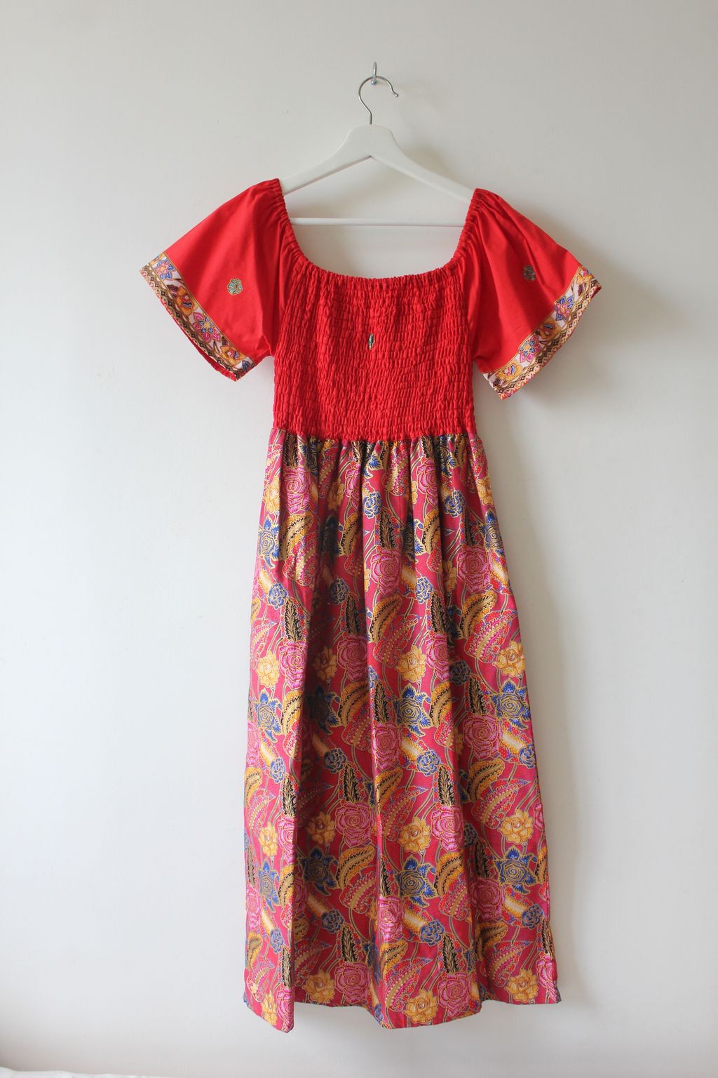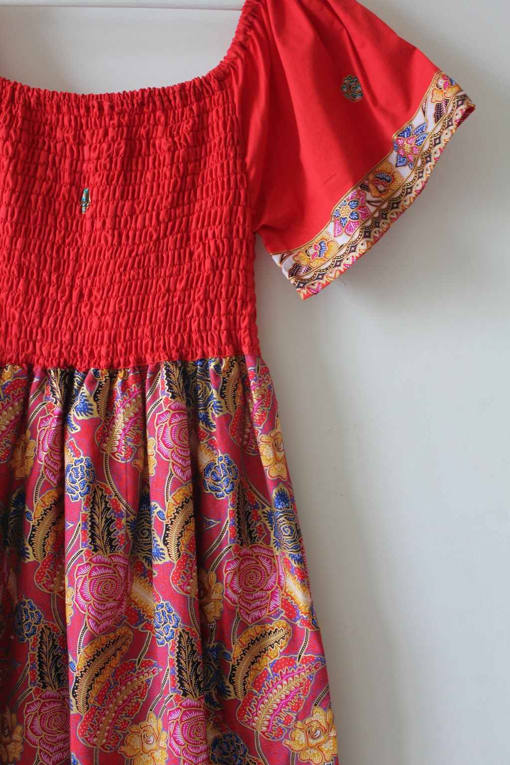 Hello Puteri of the Tropics! This gorgeous dress is really breezy and comfortable to wear! It is made of 100% soft gold-line cotton batik. This dress is labor intensive and handmade in our studio, just as where all our other garments are made with love. Only one of each color made, so if this beau is calling your name, do put it in your cart and check it out :)!