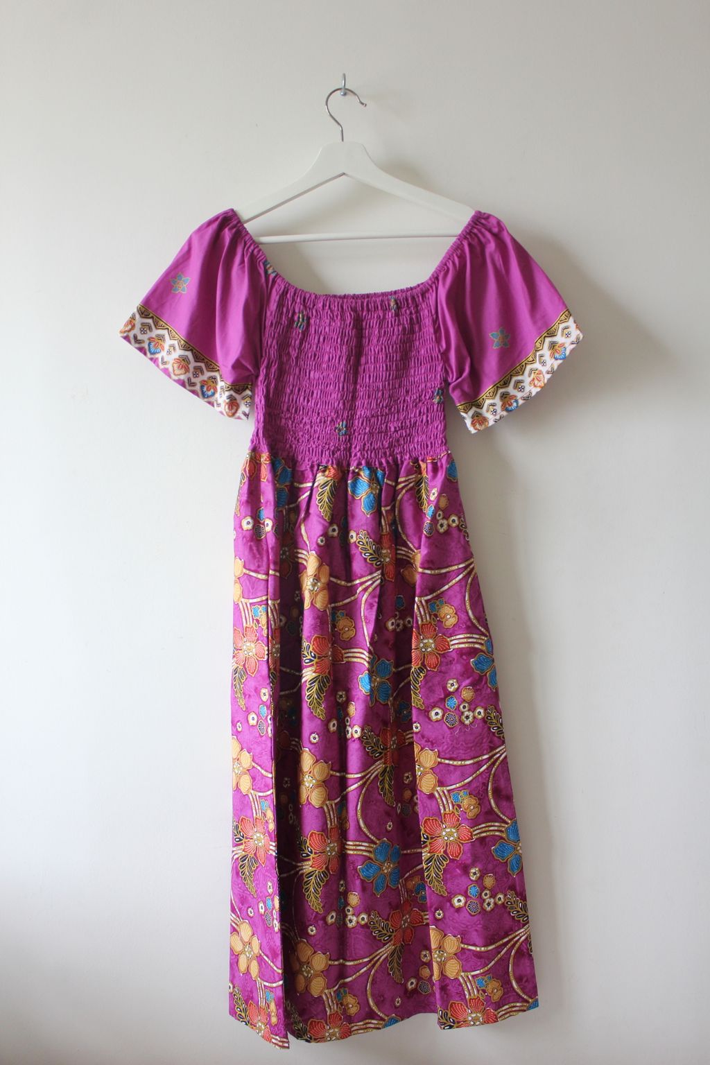 Hello Puteri of the Tropics! This gorgeous dress is really breezy and comfortable to wear! It is made of 100% soft gold-line cotton batik. This dress is labor intensive and handmade in our studio, just as where all our other garments are made with love. Only one of each color made, so if this beau is calling your name, do put it in your cart and check it out :)!