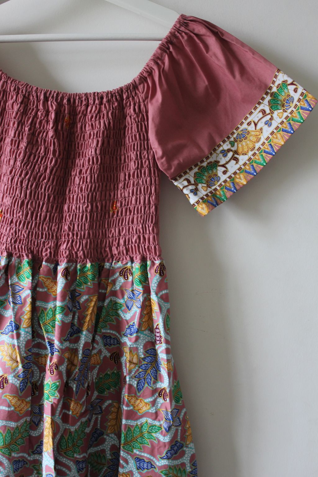 Hello Puteri of the Tropics! This gorgeous dress is really breezy and comfortable to wear! It is made of 100% soft gold-line cotton batik. This dress is labor intensive and handmade in our studio, just as where all our other garments are made with love. Only one of each color made, so if this beau is calling your name, do put it in your cart and check it out :)!