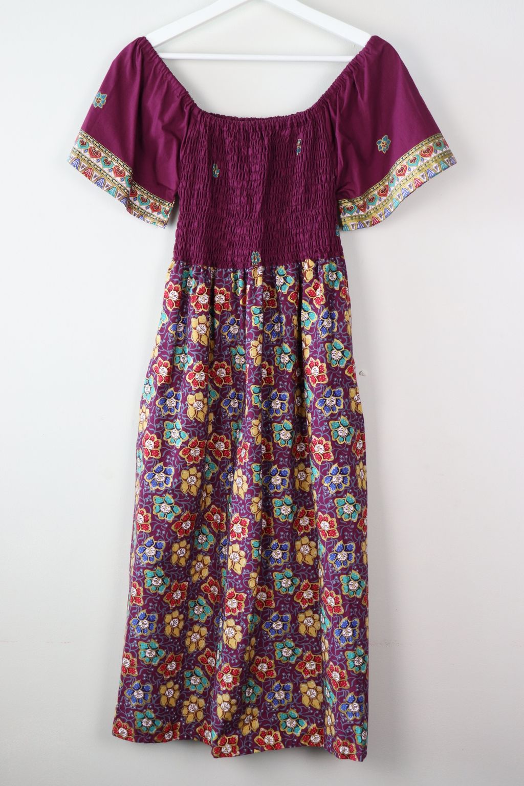 Hello Puteri of the Tropics! This gorgeous dress is really breezy and comfortable to wear! It is made of 100% soft gold-line cotton batik. This dress is labor intensive and handmade in our studio, just as where all our other garments are made with love. Only one of each color made, so if this beau is calling your name, do put it in your cart and check it out :)!