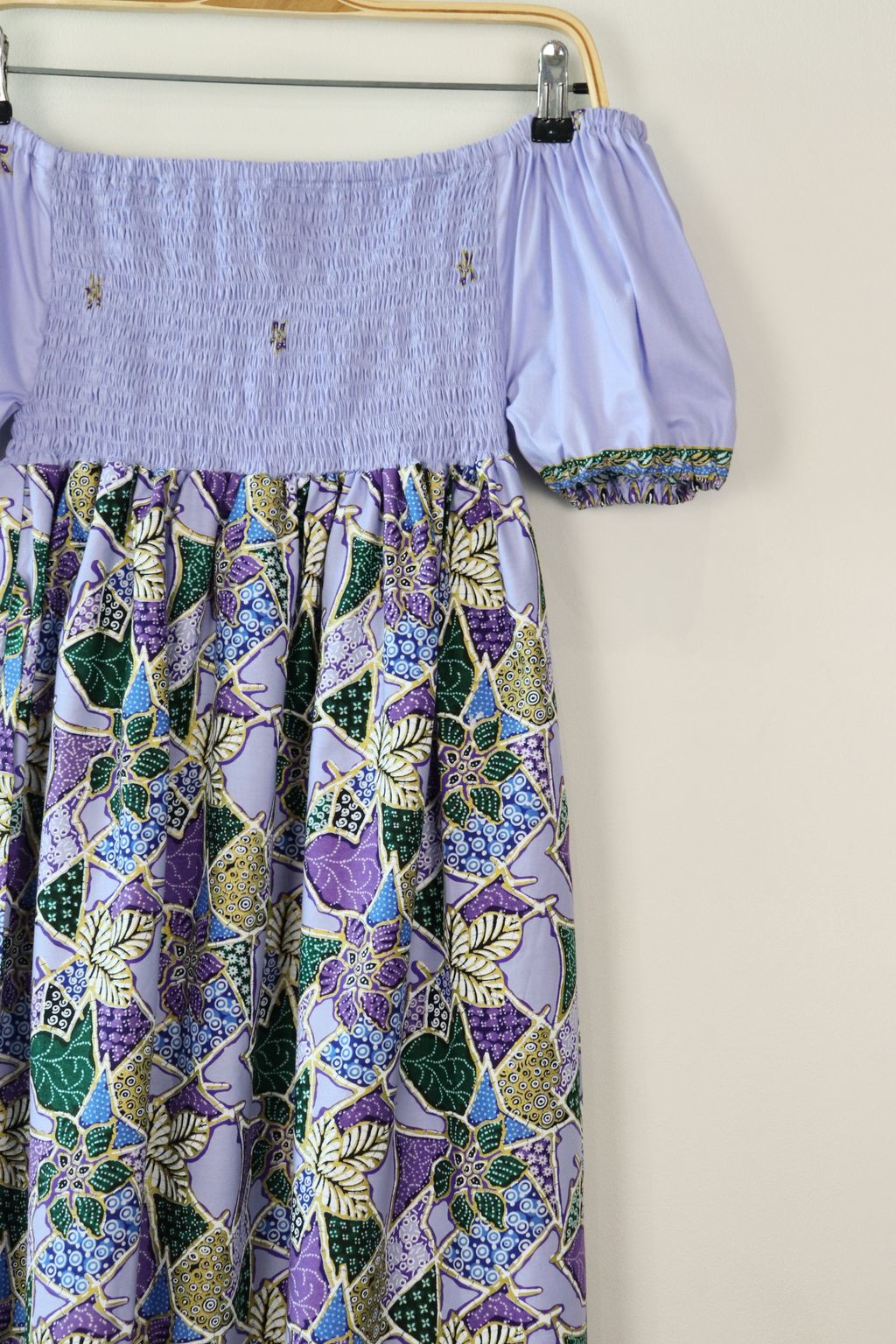 Hello Puteri of the Tropics! This gorgeous dress is really breezy and comfortable to wear! It is made of 100% soft gold-line cotton batik. This dress is labor intensive and handmade in our studio, just as where all our other garments are made with love. Only one of each color made, so if this beau is calling your name, do put it in your cart and check it out :)!