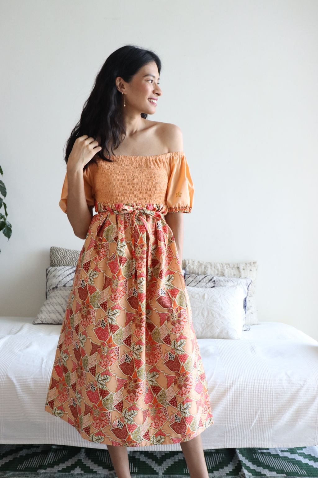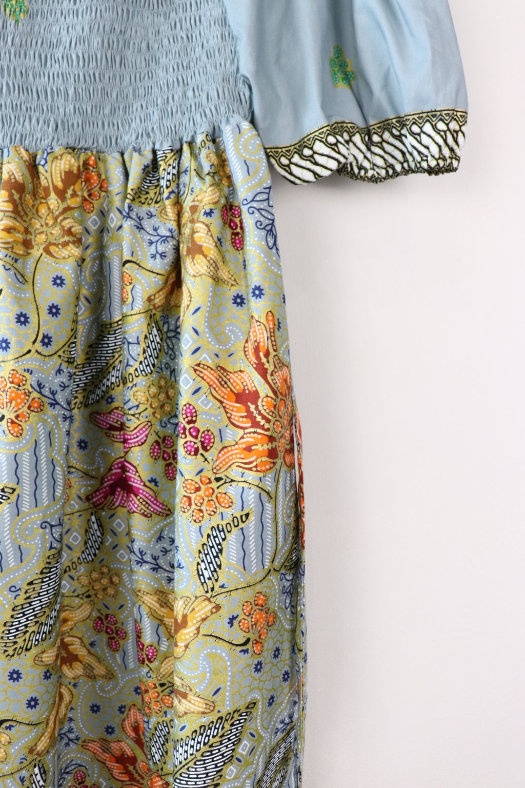 Hello Puteri of the Tropics! This gorgeous dress is really breezy and comfortable to wear! It is made of 100% soft gold-line cotton batik. This dress is labor intensive and handmade in our studio, just as where all our other garments are made with love. Only one of each color made, so if this beau is calling your name, do put it in your cart and check it out :)!