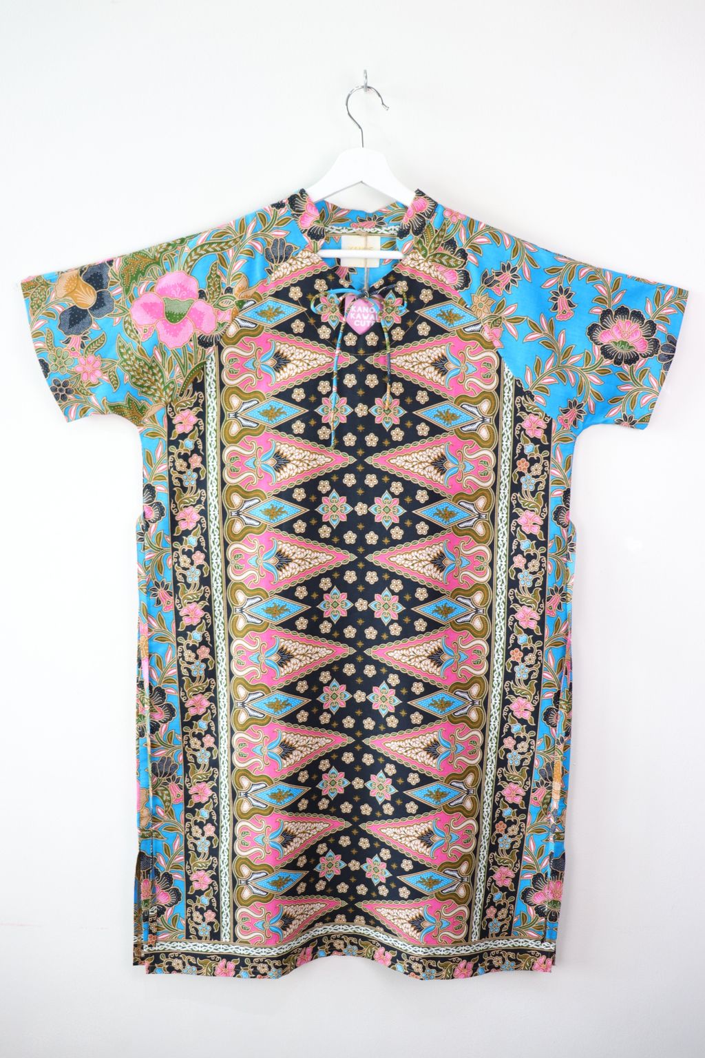 KANOE special Bunny Heart Qi Pao that features a cute heart shape keyhole with a dainty tie that adds a feminine touch. Most of the prints are made one off , meaning its unique to you !