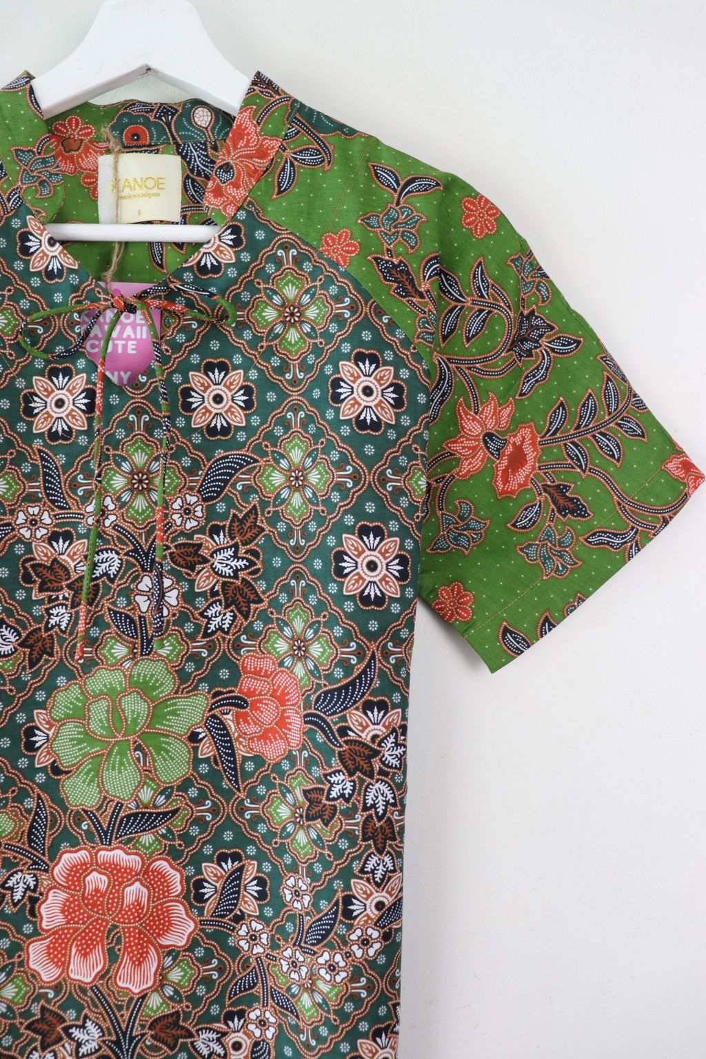 Care: Especially for the Festives whereby we want the batik to be at their brightest, we recommend bringing it to the dry cleaners for professional cleaning or wearing it prior to handwashing it. Color may bleed so please soak for a few hours in cold water and 3 tbps of salt and mild detergent, rinse until water is clear and do not dry under direct sunlight, iron may be hot.