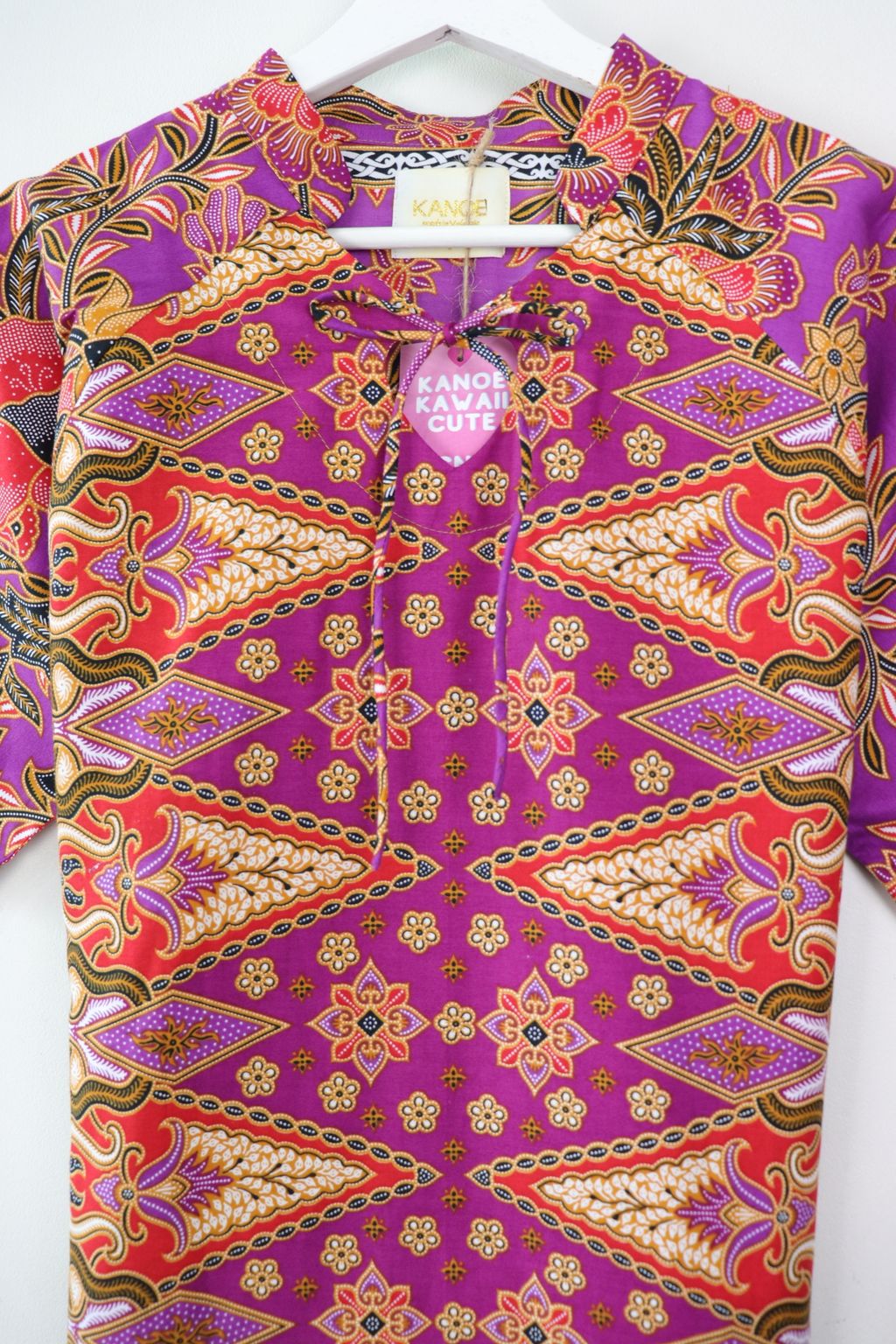 Care: Especially for the Festives whereby we want the batik to be at their brightest, we recommend bringing it to the dry cleaners for professional cleaning or wearing it prior to handwashing it. Color may bleed so please soak for a few hours in cold water and 3 tbps of salt and mild detergent, rinse until water is clear and do not dry under direct sunlight, iron may be hot.