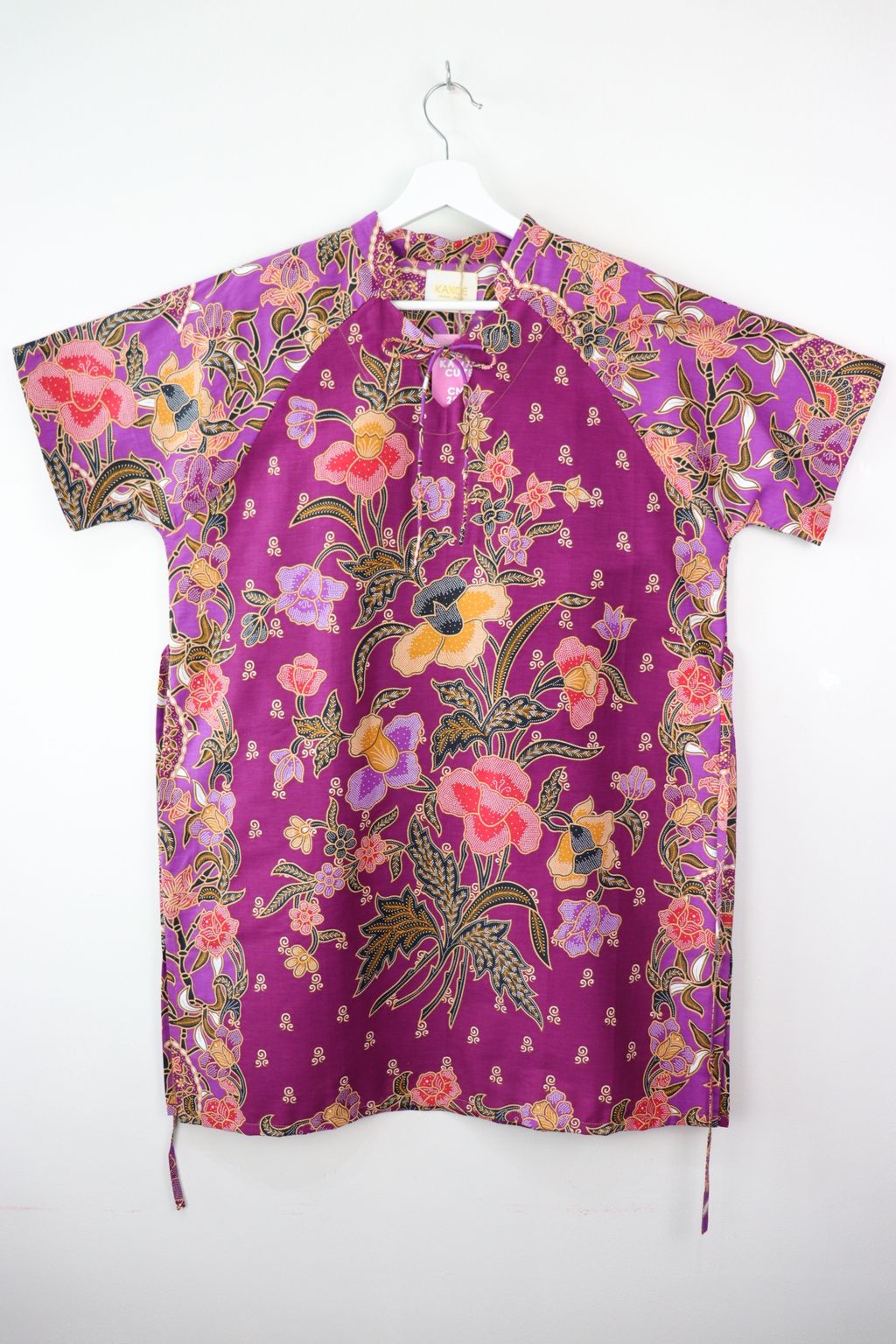 Care: Especially for the Festives whereby we want the batik to be at their brightest, we recommend bringing it to the dry cleaners for professional cleaning or wearing it prior to handwashing it. Color may bleed so please soak for a few hours in cold water and 3 tbps of salt and mild detergent, rinse until water is clear and do not dry under direct sunlight, iron may be hot.