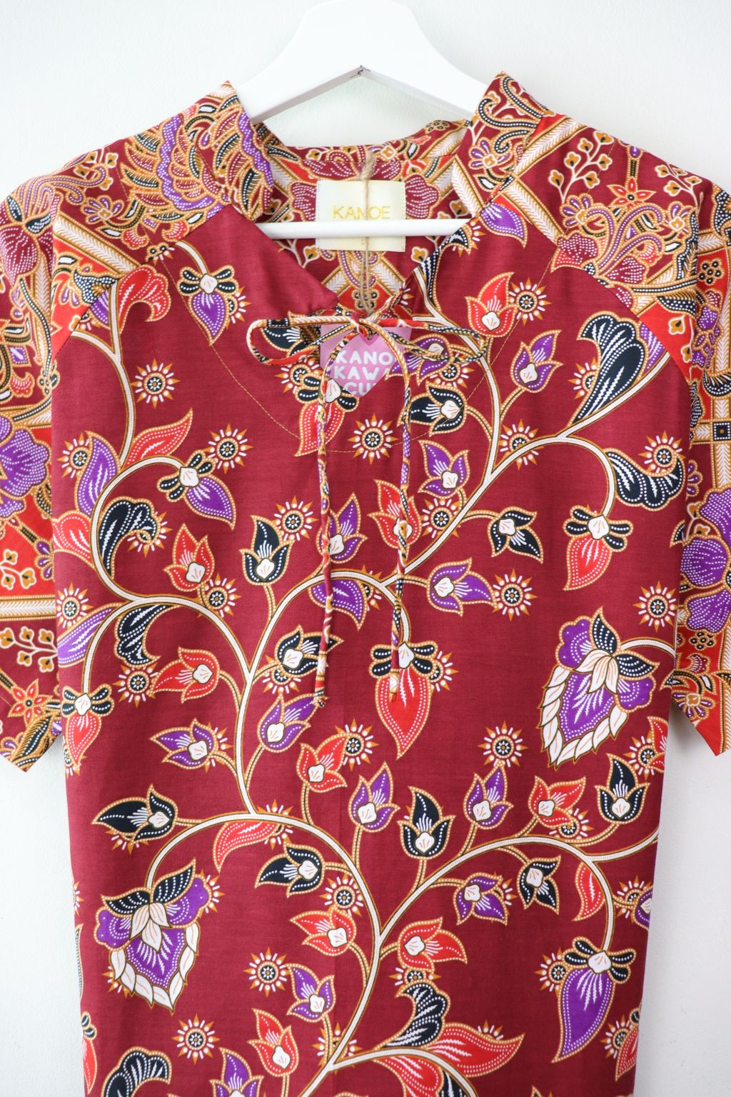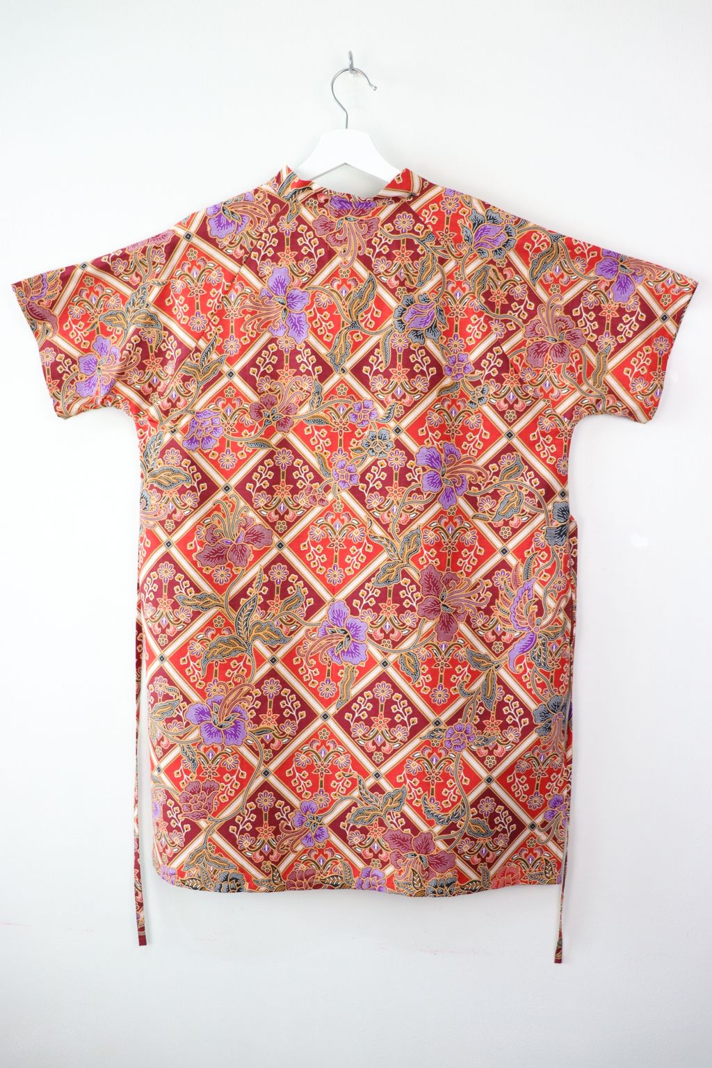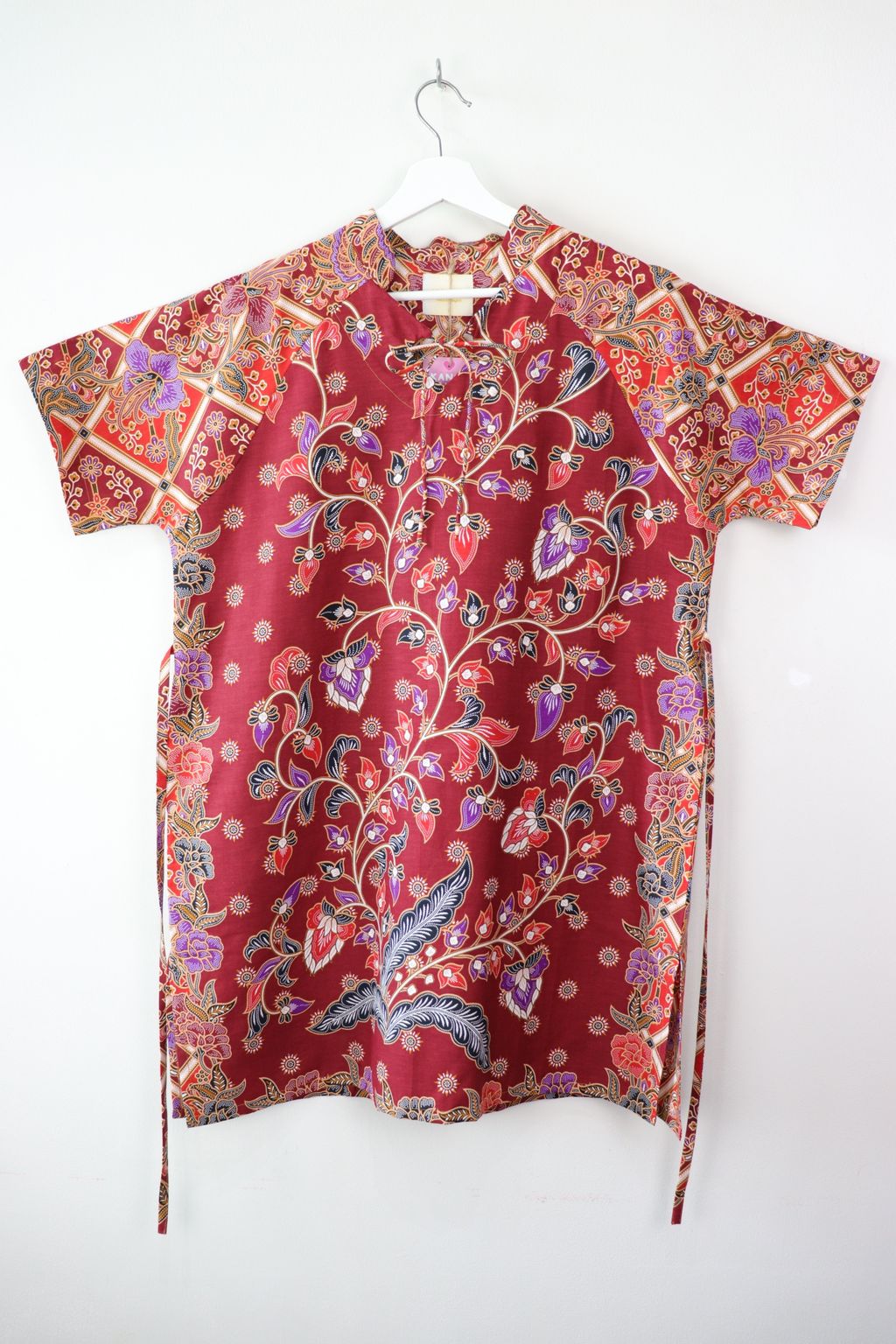 Care: Especially for the Festives whereby we want the batik to be at their brightest, we recommend bringing it to the dry cleaners for professional cleaning or wearing it prior to handwashing it. Color may bleed so please soak for a few hours in cold water and 3 tbps of salt and mild detergent, rinse until water is clear and do not dry under direct sunlight, iron may be hot.