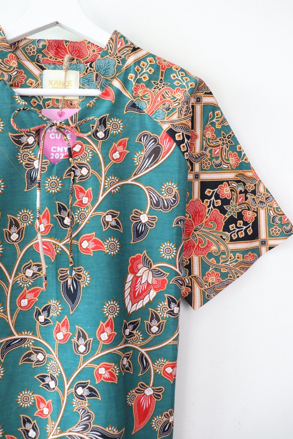 Care: Especially for the Festives whereby we want the batik to be at their brightest, we recommend bringing it to the dry cleaners for professional cleaning or wearing it prior to handwashing it. Color may bleed so please soak for a few hours in cold water and 3 tbps of salt and mild detergent, rinse until water is clear and do not dry under direct sunlight, iron may be hot.