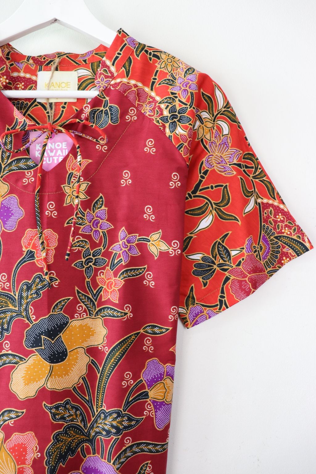 Care: Especially for the Festives whereby we want the batik to be at their brightest, we recommend bringing it to the dry cleaners for professional cleaning or wearing it prior to handwashing it. Color may bleed so please soak for a few hours in cold water and 3 tbps of salt and mild detergent, rinse until water is clear and do not dry under direct sunlight, iron may be hot.