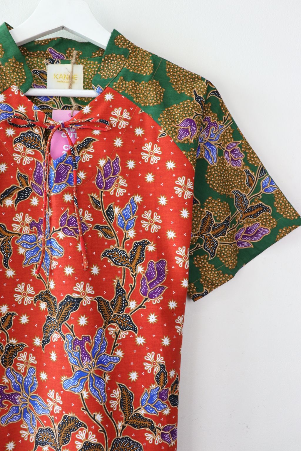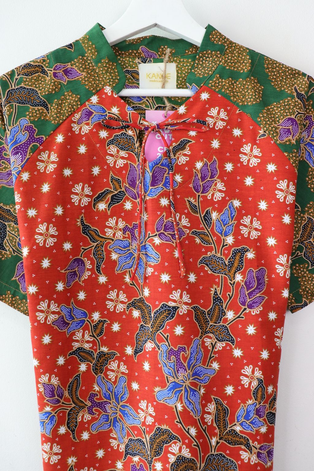 Care: Especially for the Festives whereby we want the batik to be at their brightest, we recommend bringing it to the dry cleaners for professional cleaning or wearing it prior to handwashing it. Color may bleed so please soak for a few hours in cold water and 3 tbps of salt and mild detergent, rinse until water is clear and do not dry under direct sunlight, iron may be hot.