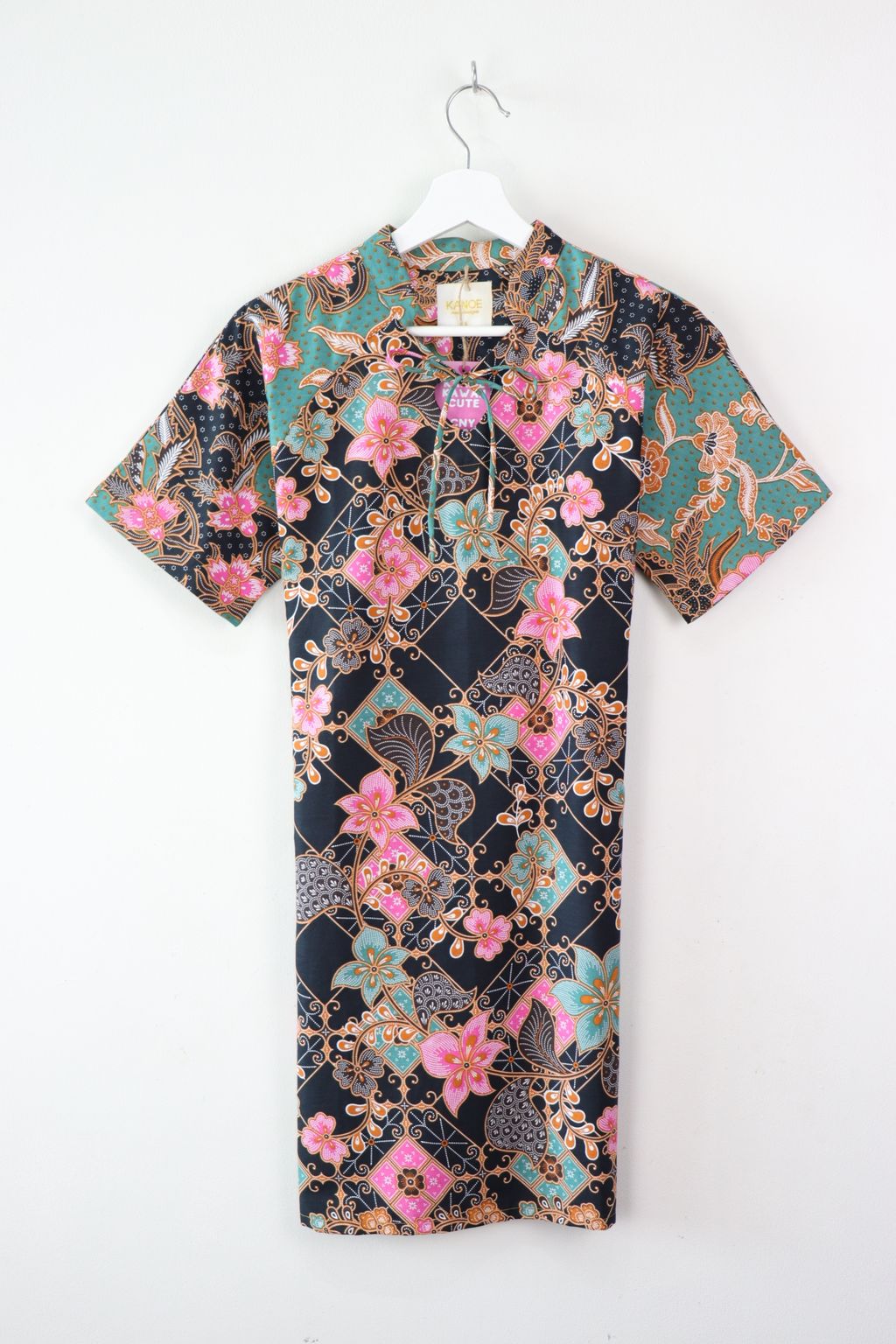 KANOE special Bunny Heart Qi Pao that features a cute heart shape keyhole with a dainty tie that adds a feminine touch. Most of the prints are made one off , meaning its unique to you !