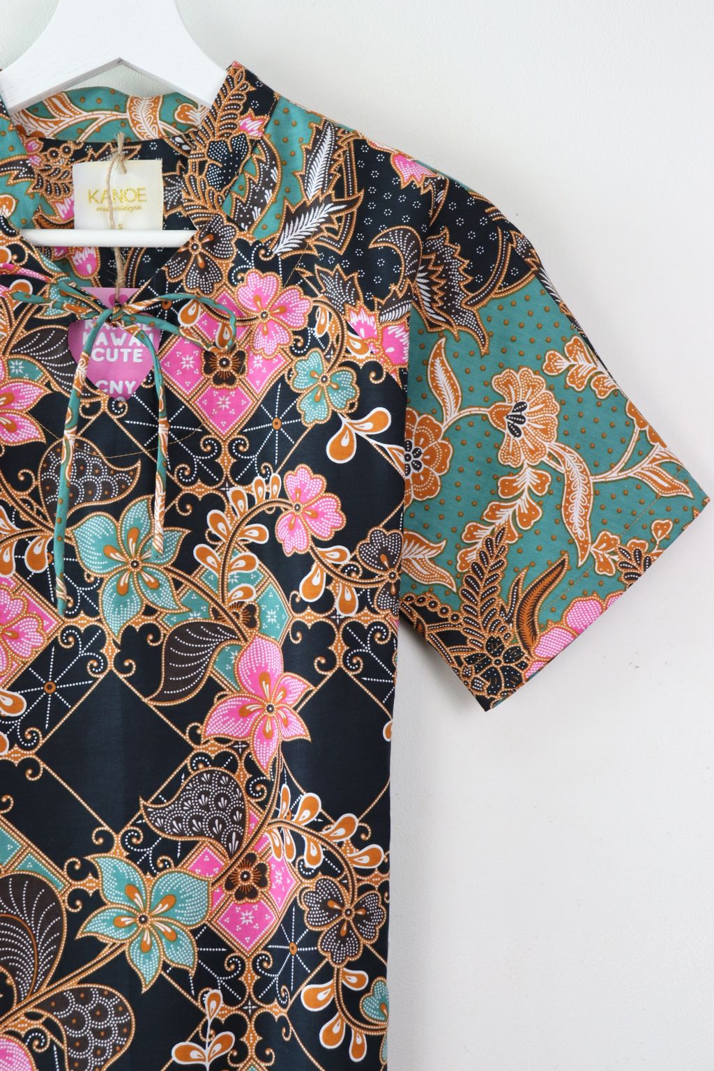 Care: Especially for the Festives whereby we want the batik to be at their brightest, we recommend bringing it to the dry cleaners for professional cleaning or wearing it prior to handwashing it. Color may bleed so please soak for a few hours in cold water and 3 tbps of salt and mild detergent, rinse until water is clear and do not dry under direct sunlight, iron may be hot.