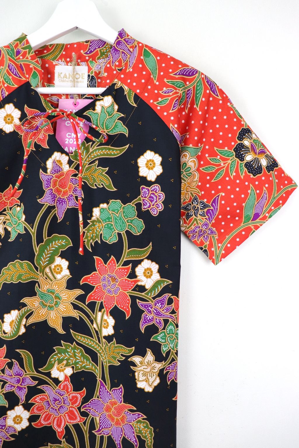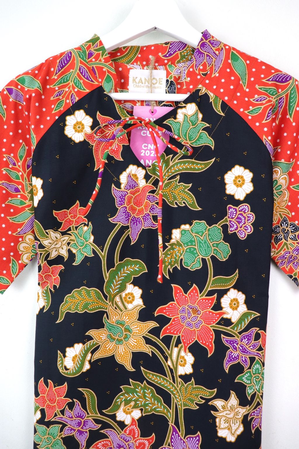 Care: Especially for the Festives whereby we want the batik to be at their brightest, we recommend bringing it to the dry cleaners for professional cleaning or wearing it prior to handwashing it. Color may bleed so please soak for a few hours in cold water and 3 tbps of salt and mild detergent, rinse until water is clear and do not dry under direct sunlight, iron may be hot.