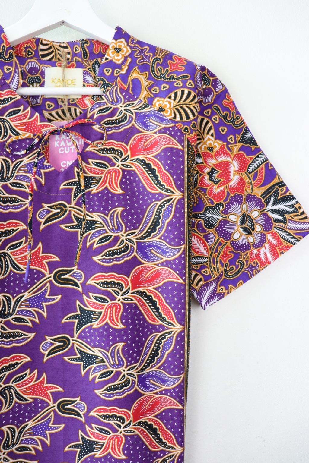 Care: Especially for the Festives whereby we want the batik to be at their brightest, we recommend bringing it to the dry cleaners for professional cleaning or wearing it prior to handwashing it. Color may bleed so please soak for a few hours in cold water and 3 tbps of salt and mild detergent, rinse until water is clear and do not dry under direct sunlight, iron may be hot.