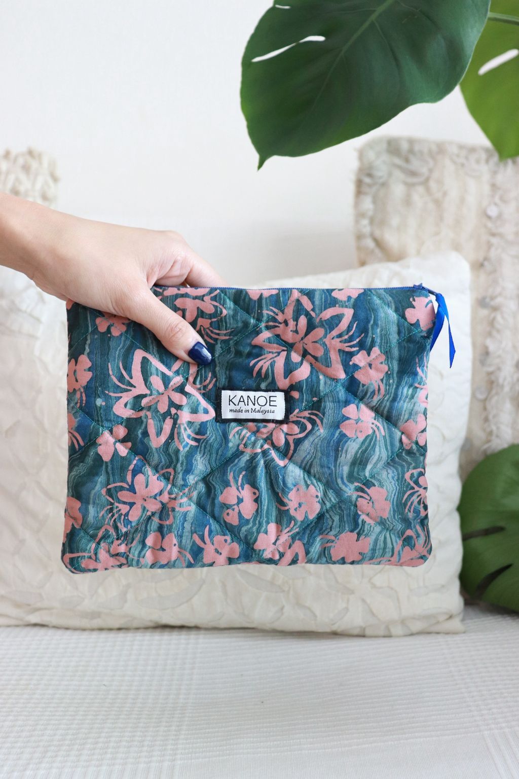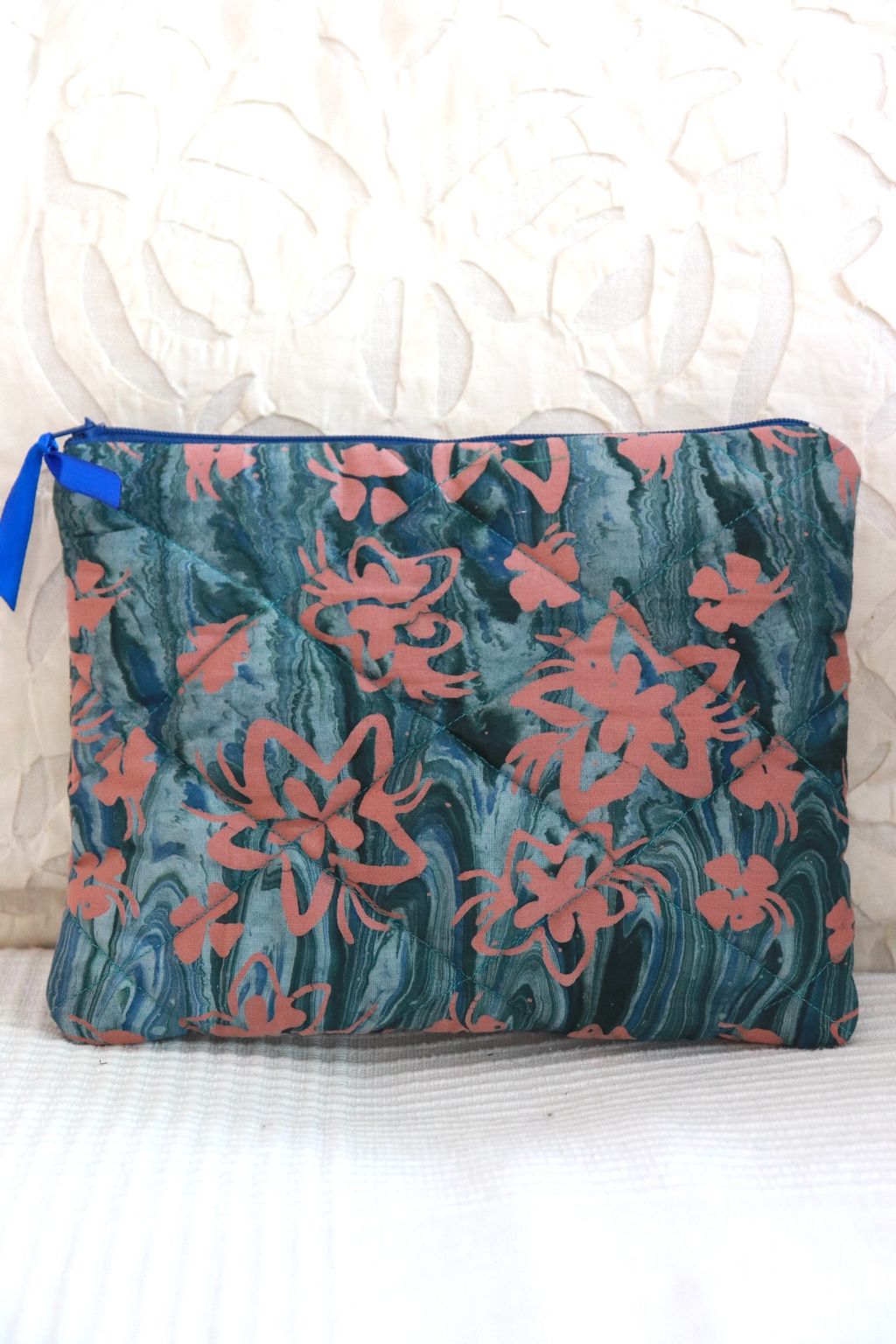 Quilted Batik Pouch - AquaDrizzle [ Handmade ]