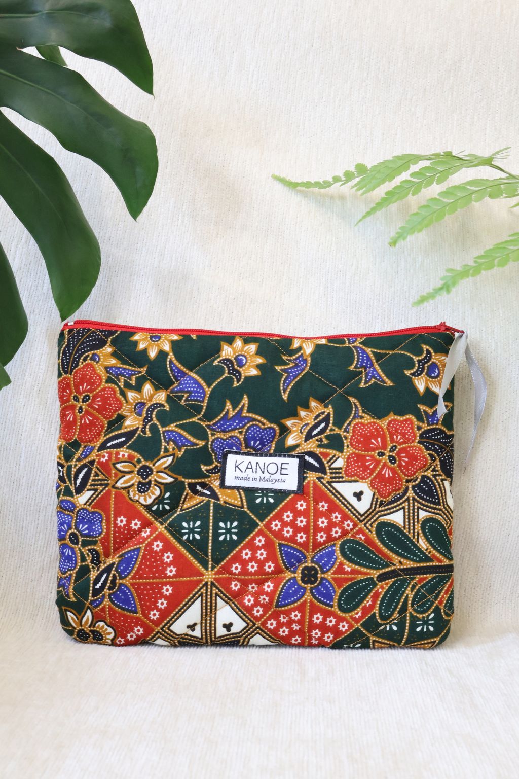 Quilted Batik Pouch - Emerald Groove