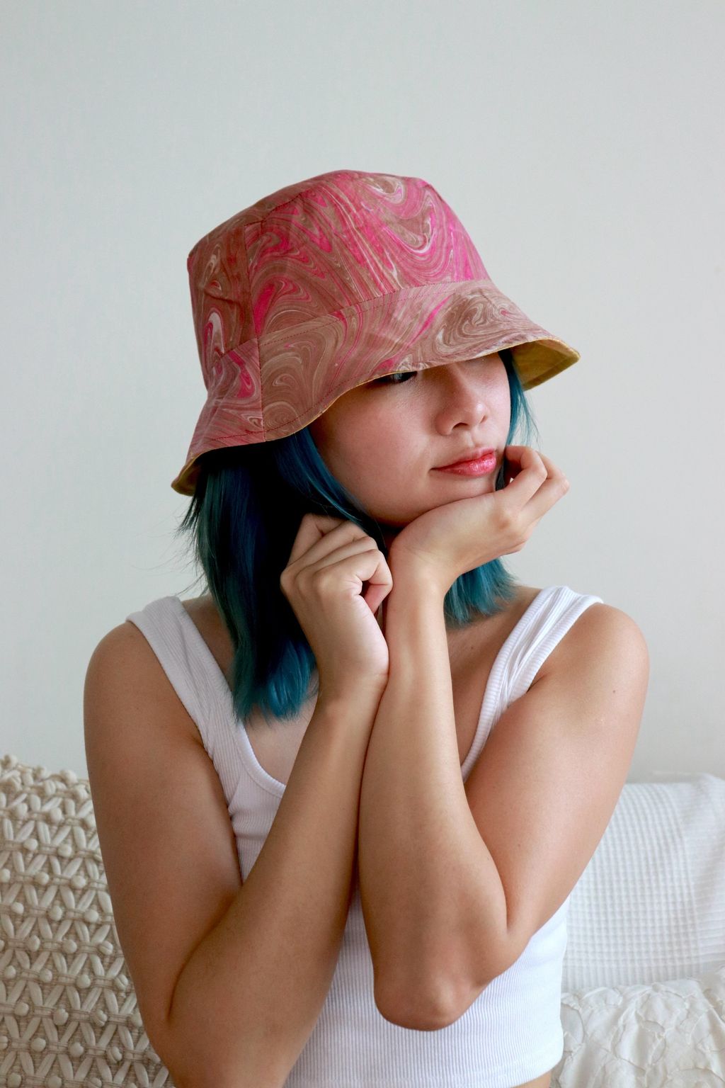 Reversible Batik Bucket Hat Short Brim - Lyra [ Hand Marbled ]