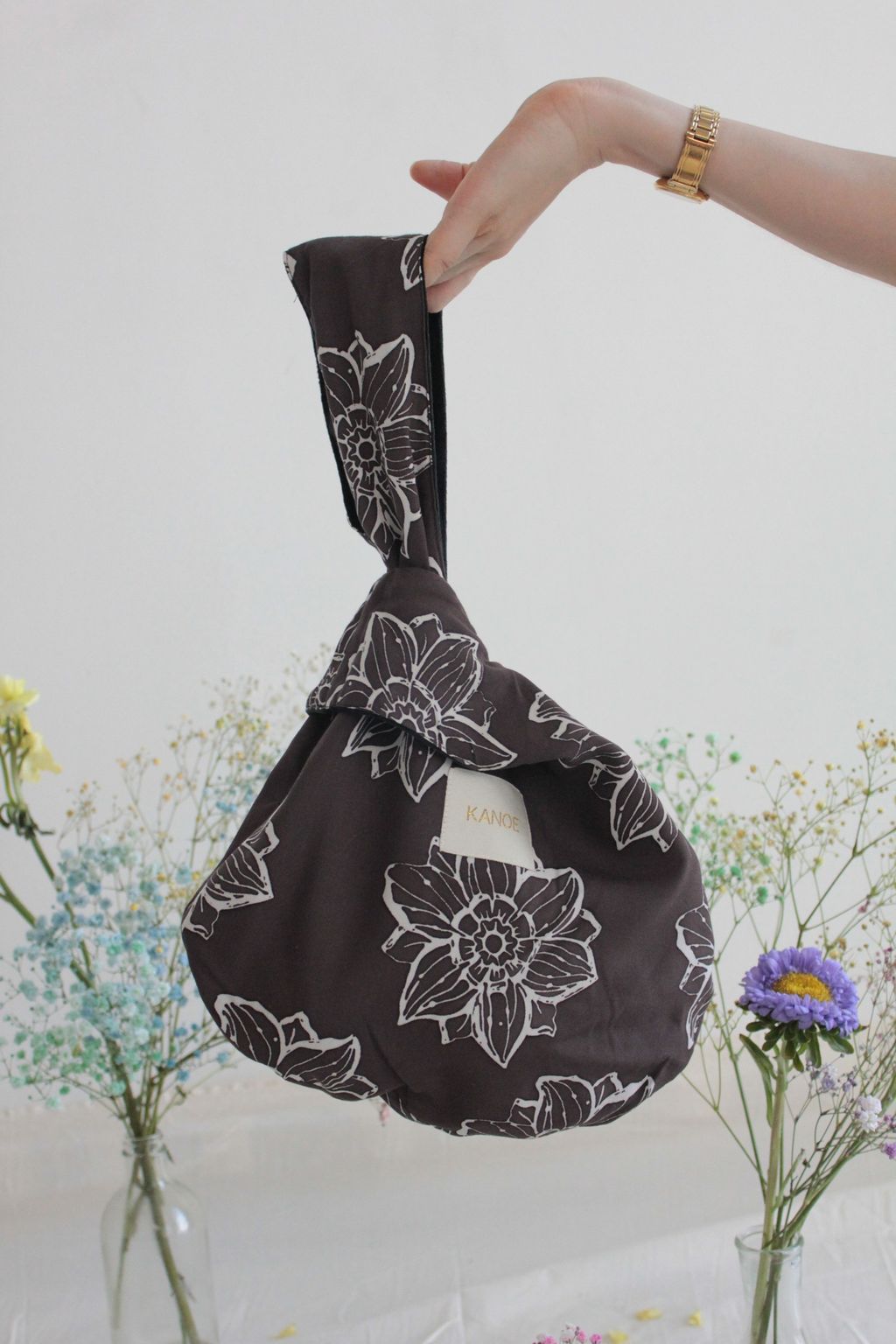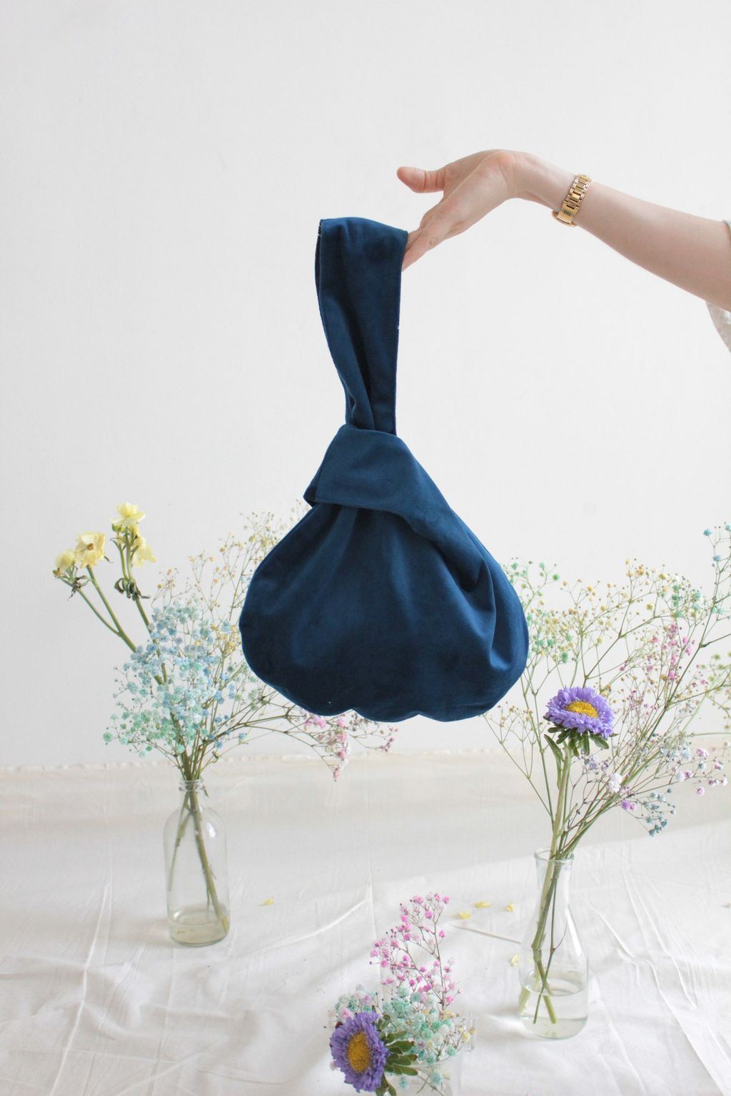 Reversible Velvet+Batik KnotBag - Prussian Bleu