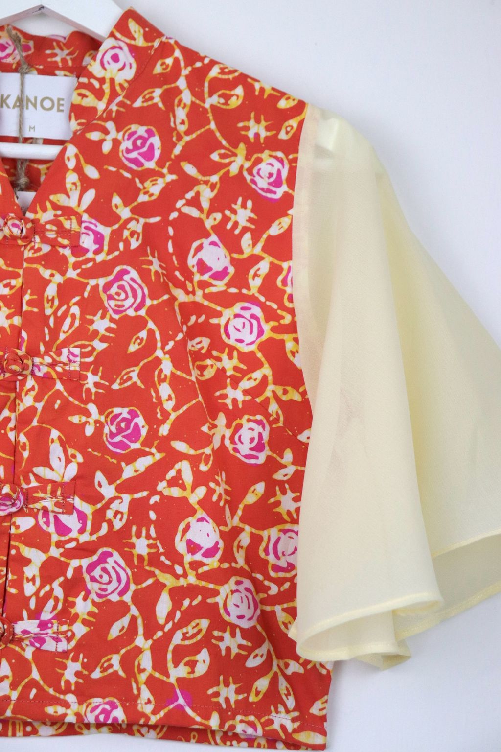 Sheer Sleeve Batik Top - Citrus Smart [ Handmade ] [ M ]