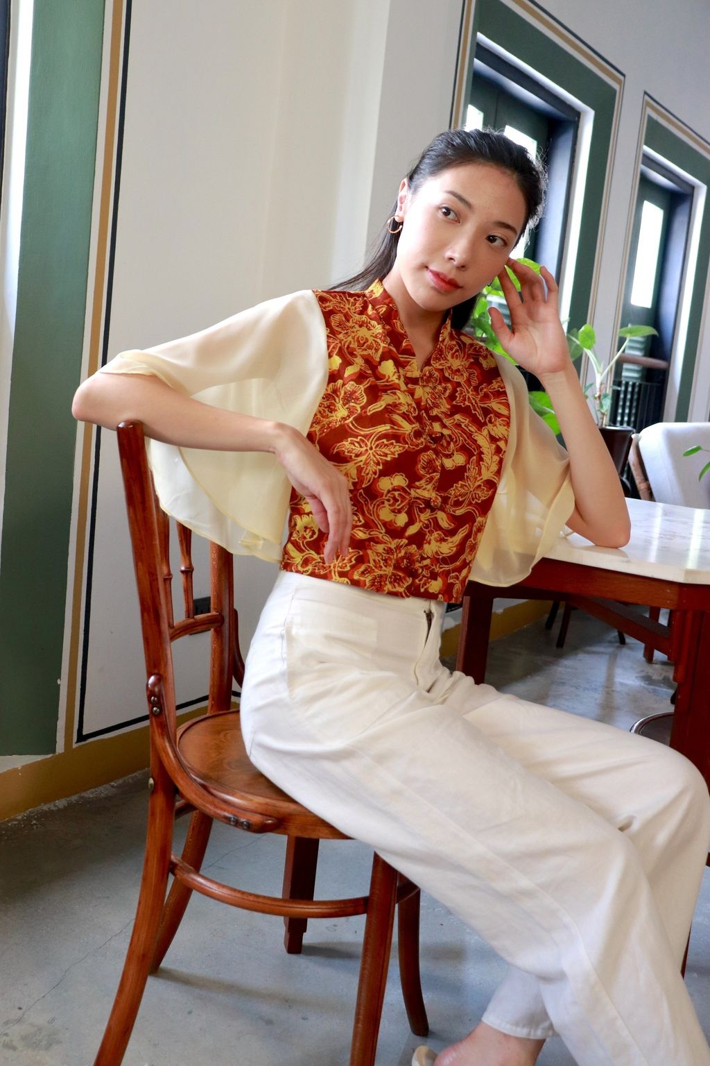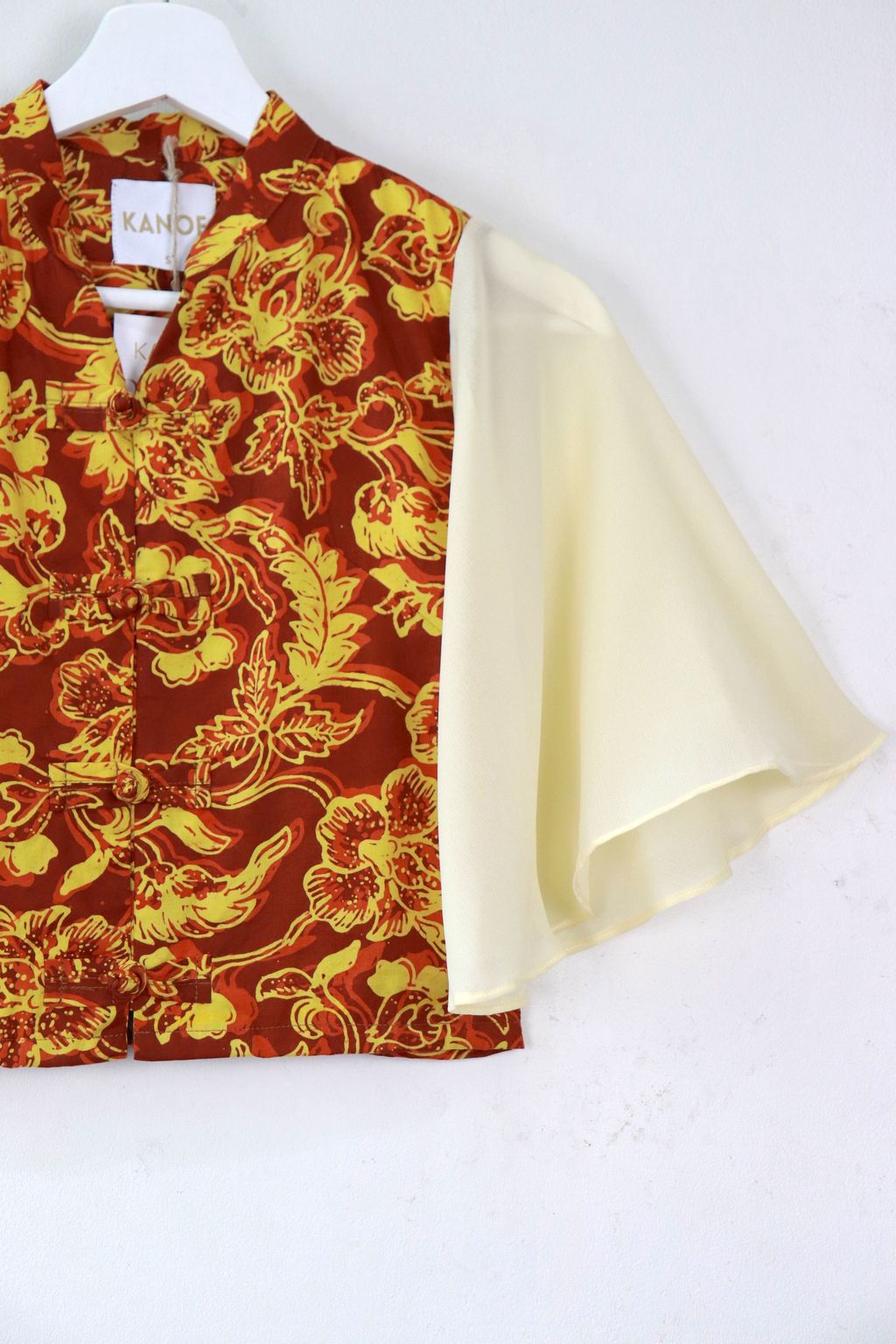 Sheer Sleeve Batik Top - Hui Yui [ Handmade ] [ S ]