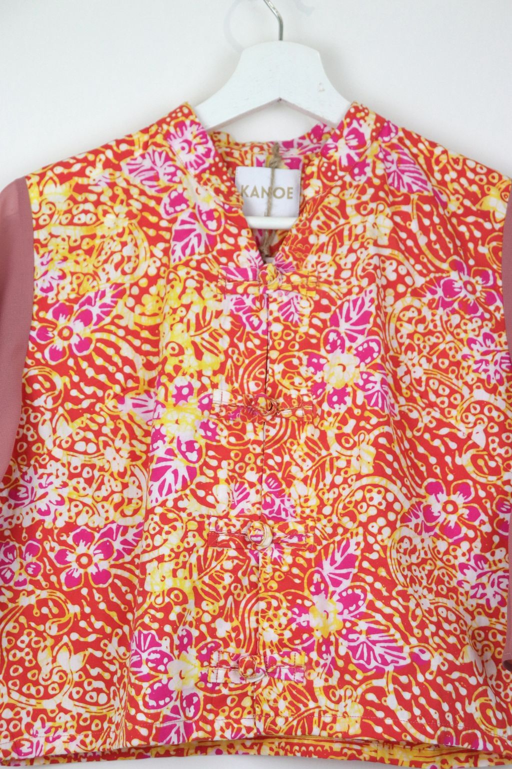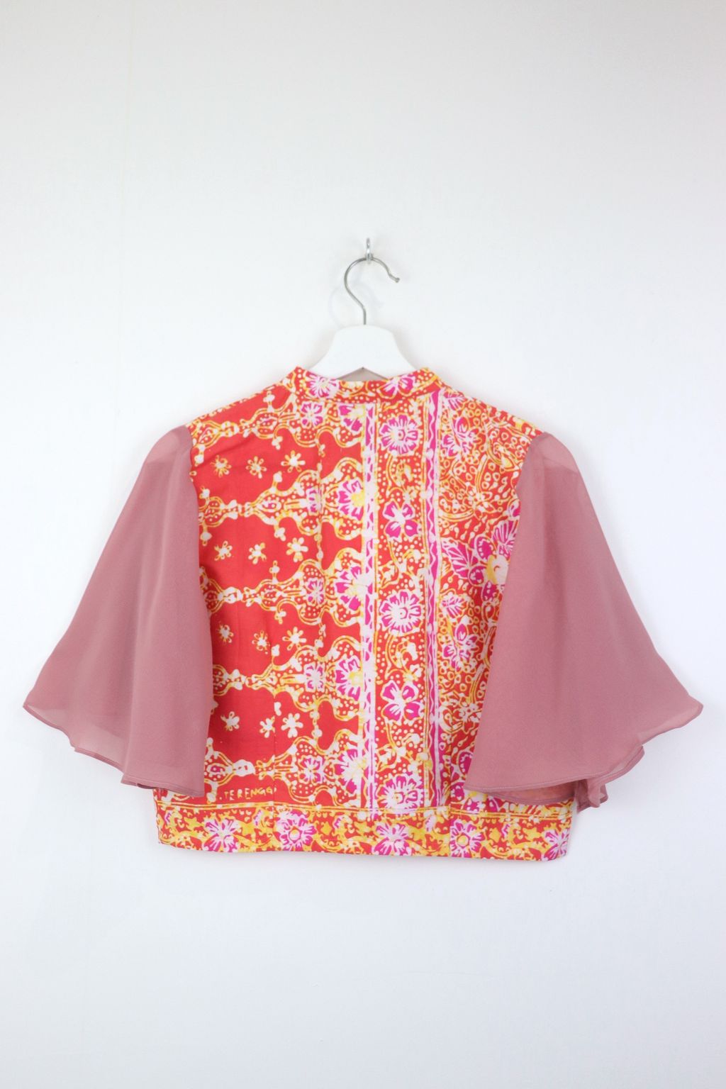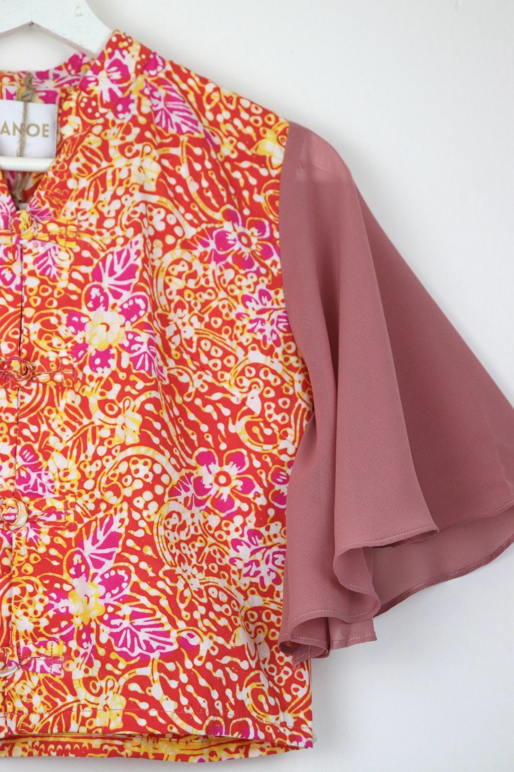 Sheer Sleeve Batik Top - Marmalade Rose [ Handmade ] [ L ]