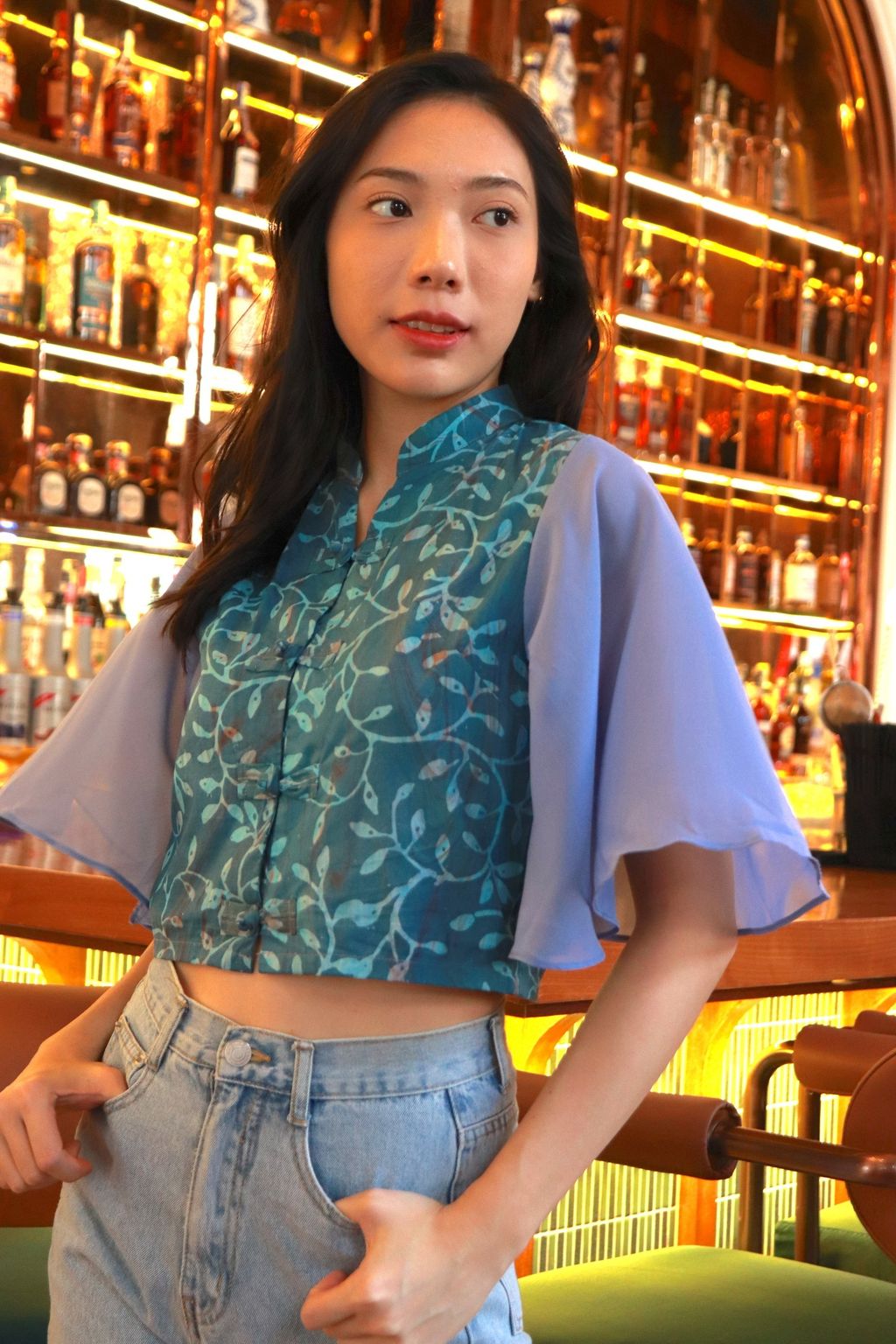 Sheer Sleeve Batik Top - Shu Yi [ Handmade ] [ S ]