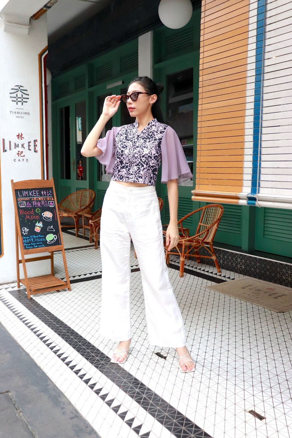 This feminine fatale batik cropped top comes with flouncy sheer sleeves for added dramatic flair.