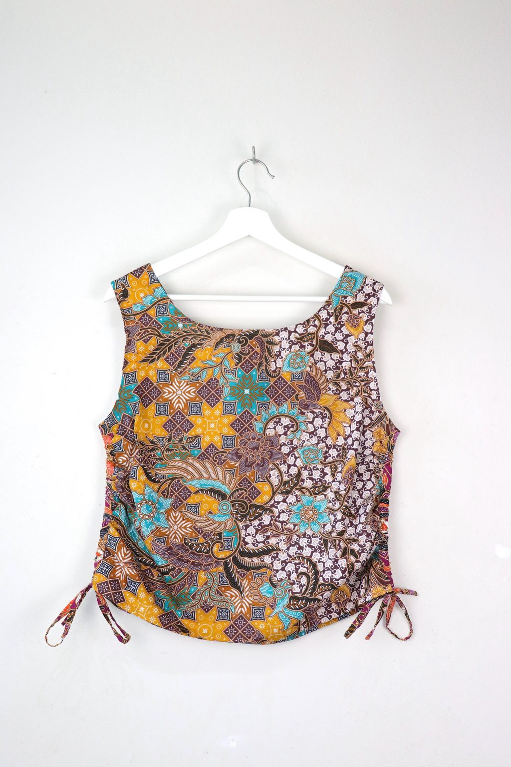 Side Ruched Drawstring Batik Top - Aloha Heliconias ( M - L )