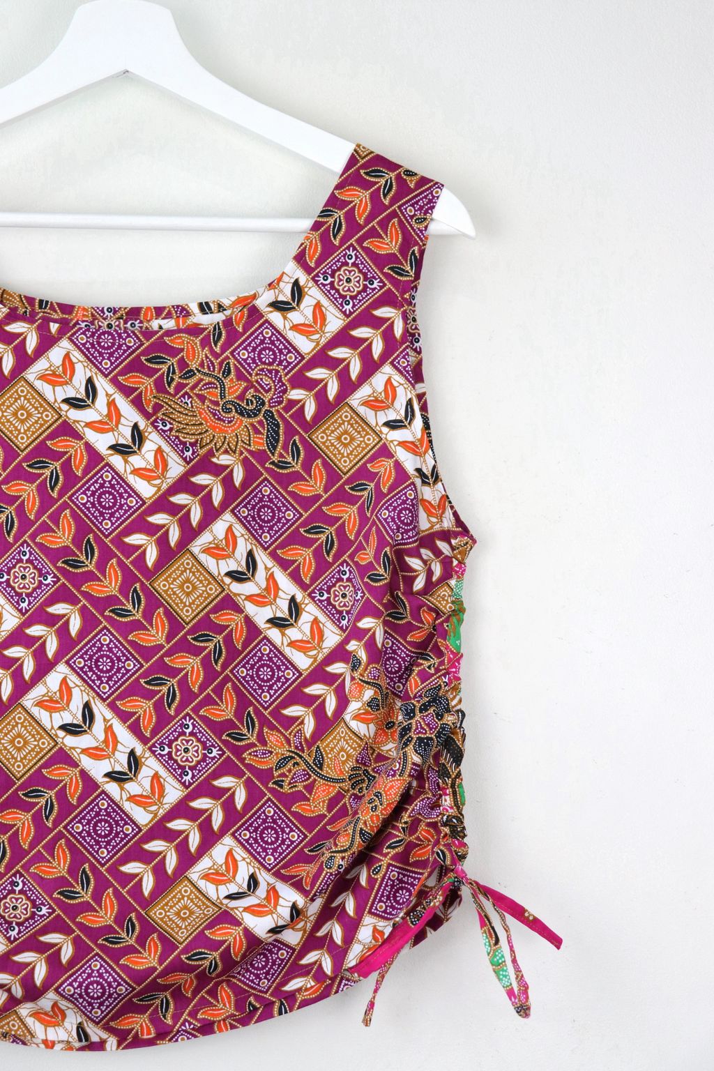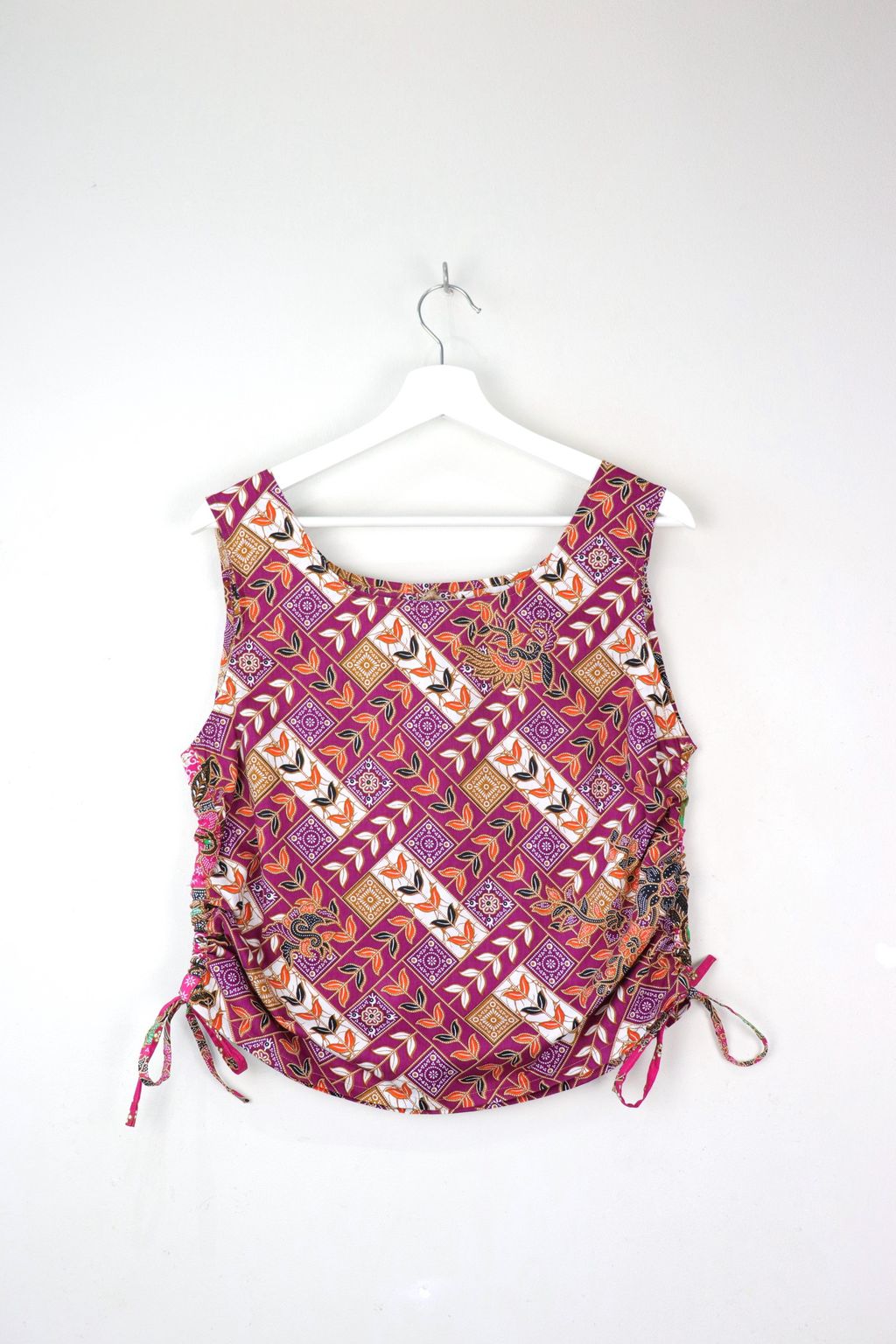 Side Ruched Drawstring Batik Top - Bahamas Babe ( M - L )