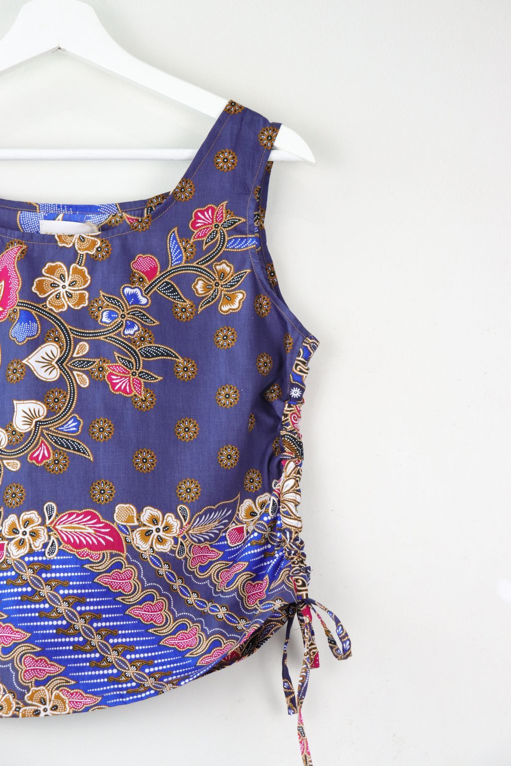 Side Ruched Drawstring Batik Top - Cliffside Picnic ( S - M )