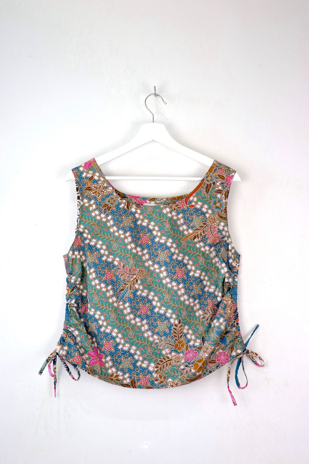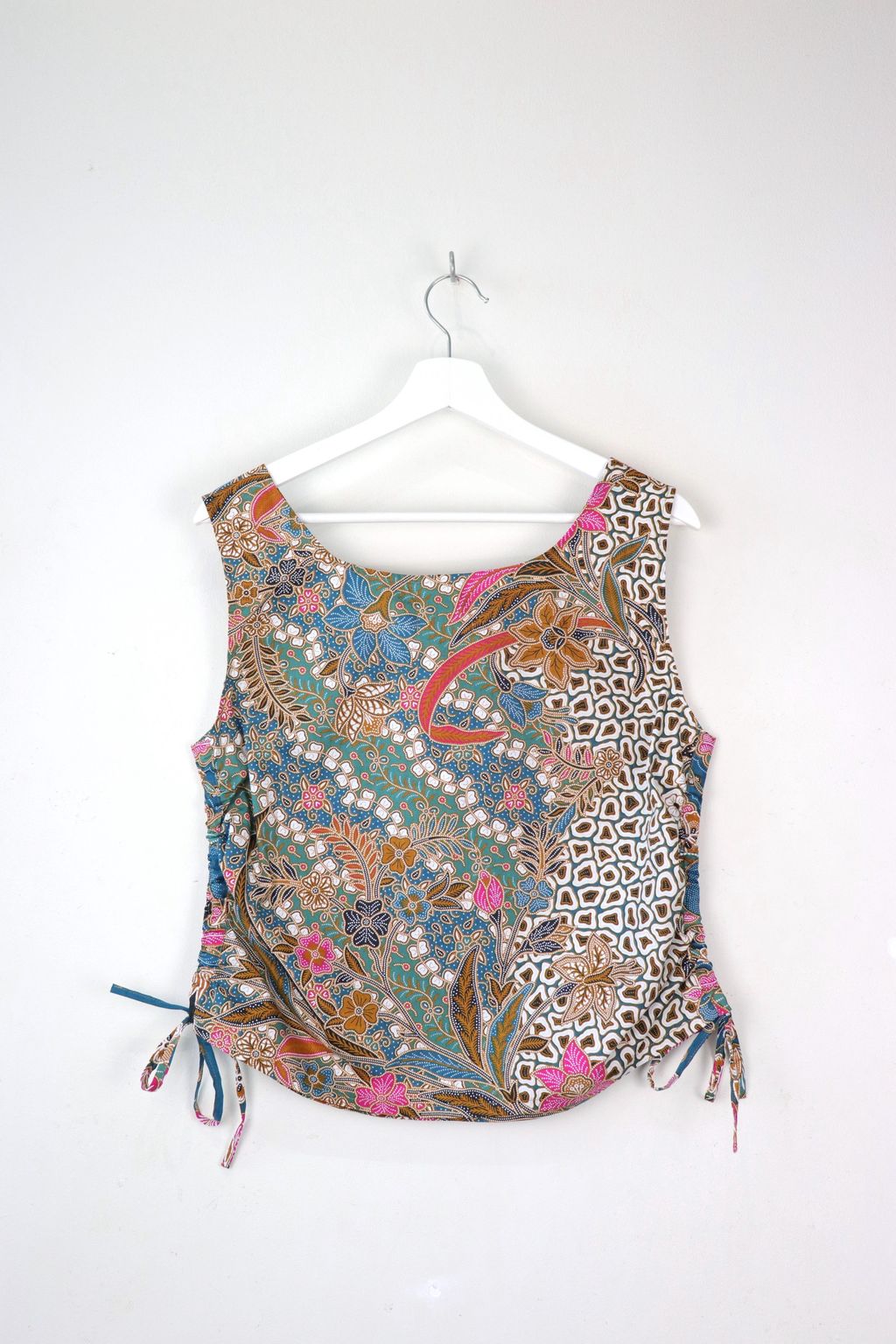 Side Ruched Drawstring Batik Top - Cool Breeze ( M - L )