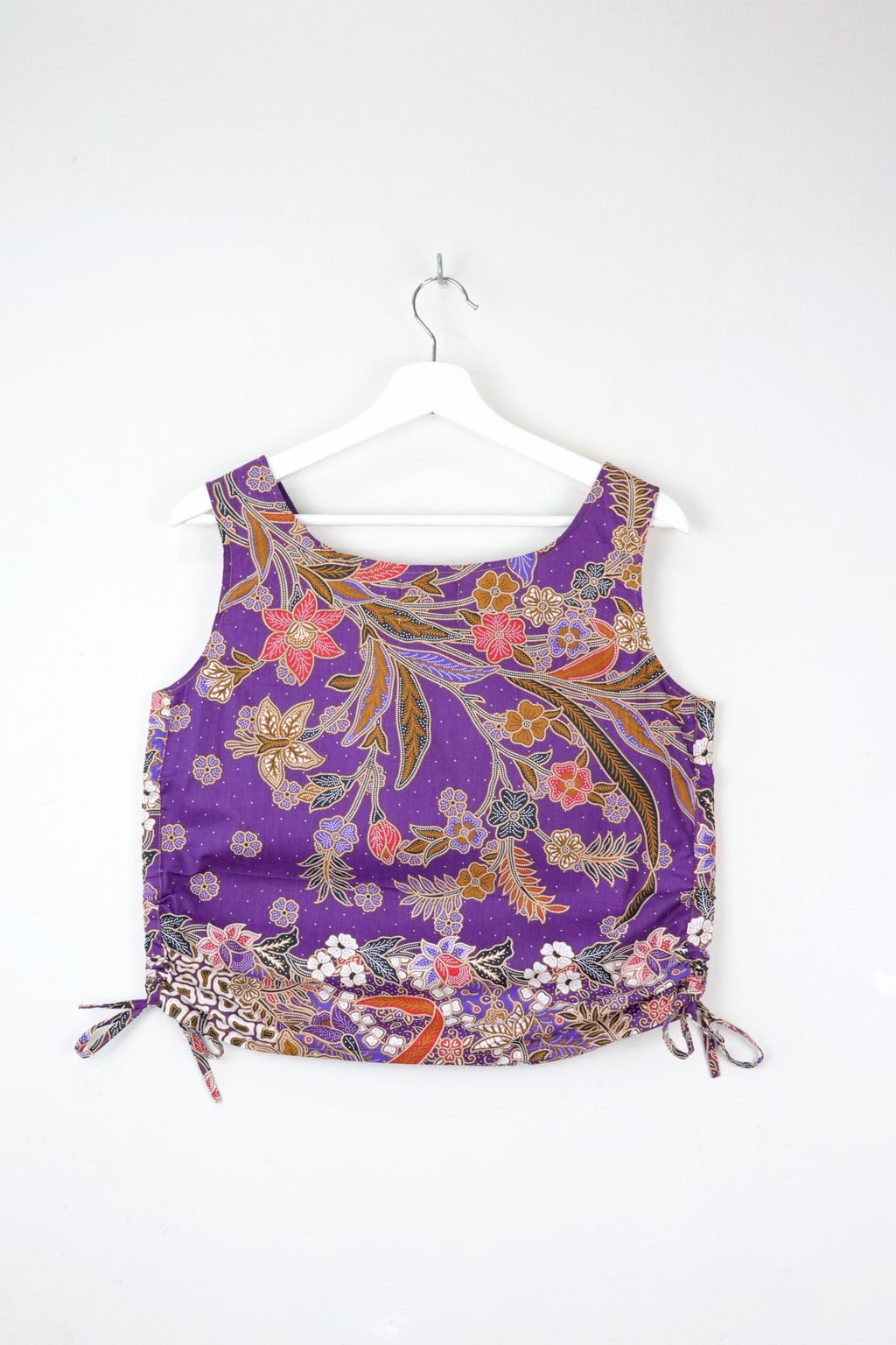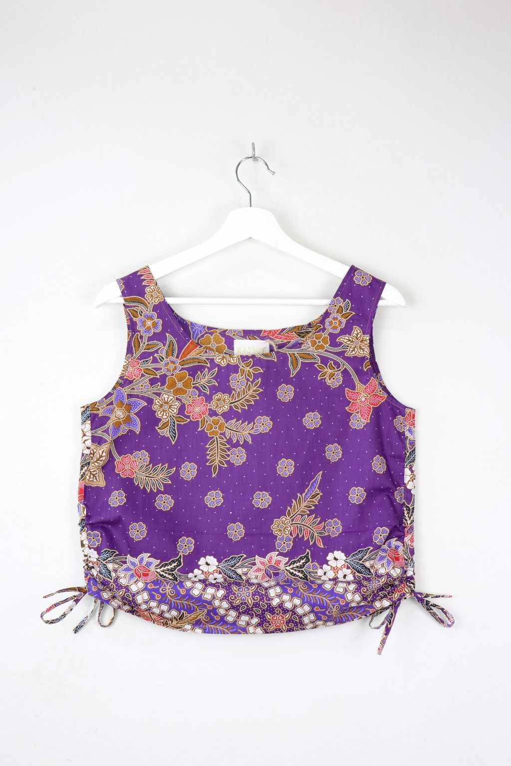 Side Ruched Drawstring Batik Top - Evening Skies ( S - M )
