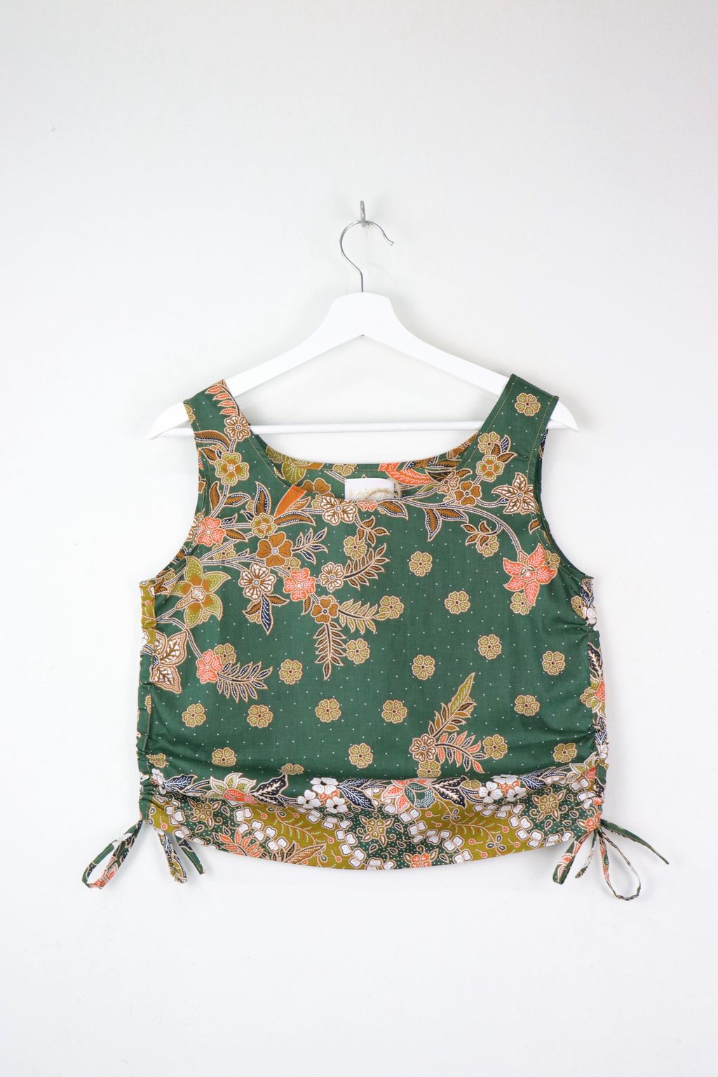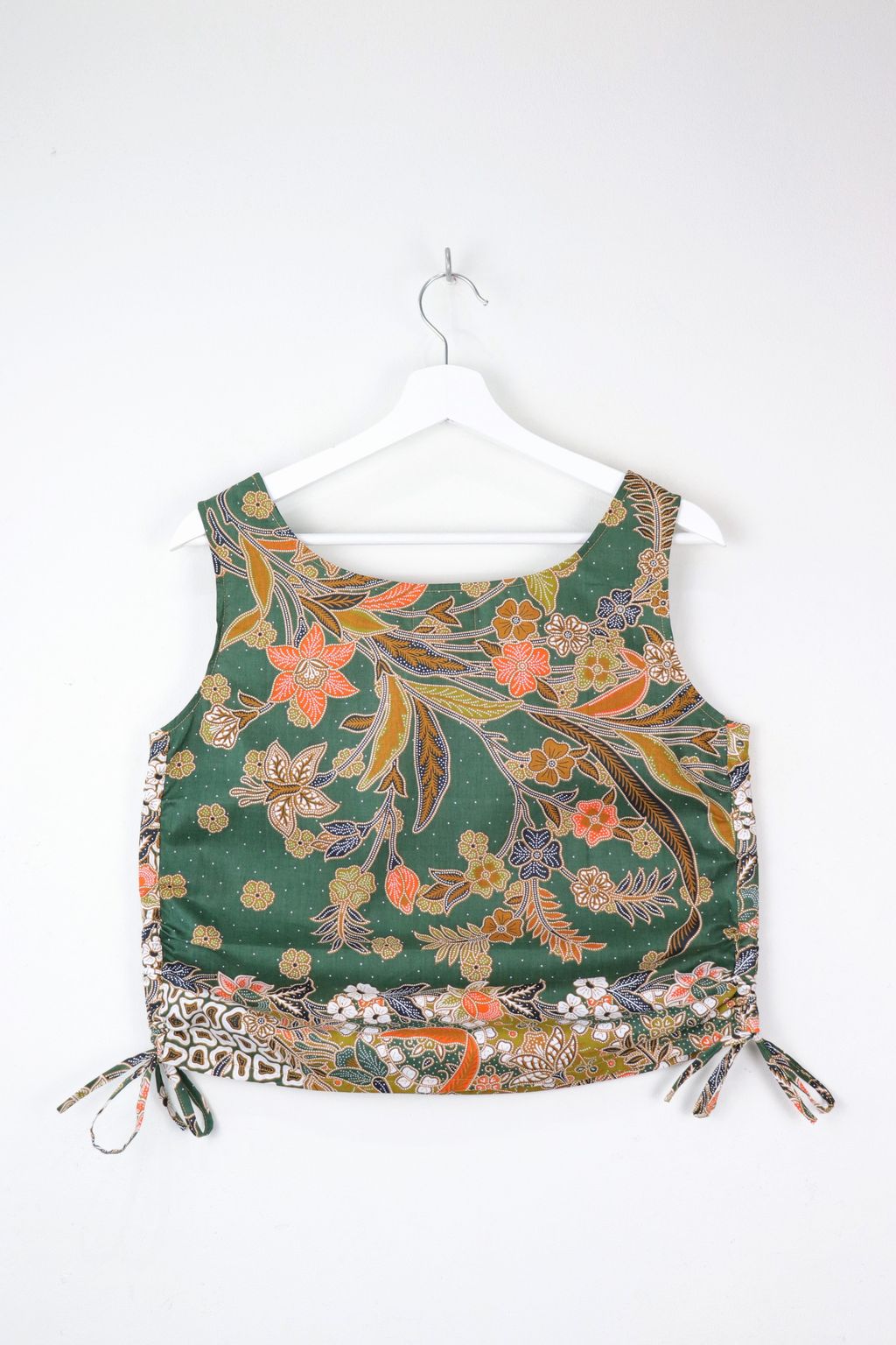 Side Ruched Drawstring Batik Top - Evergreen Forest ( S - M )