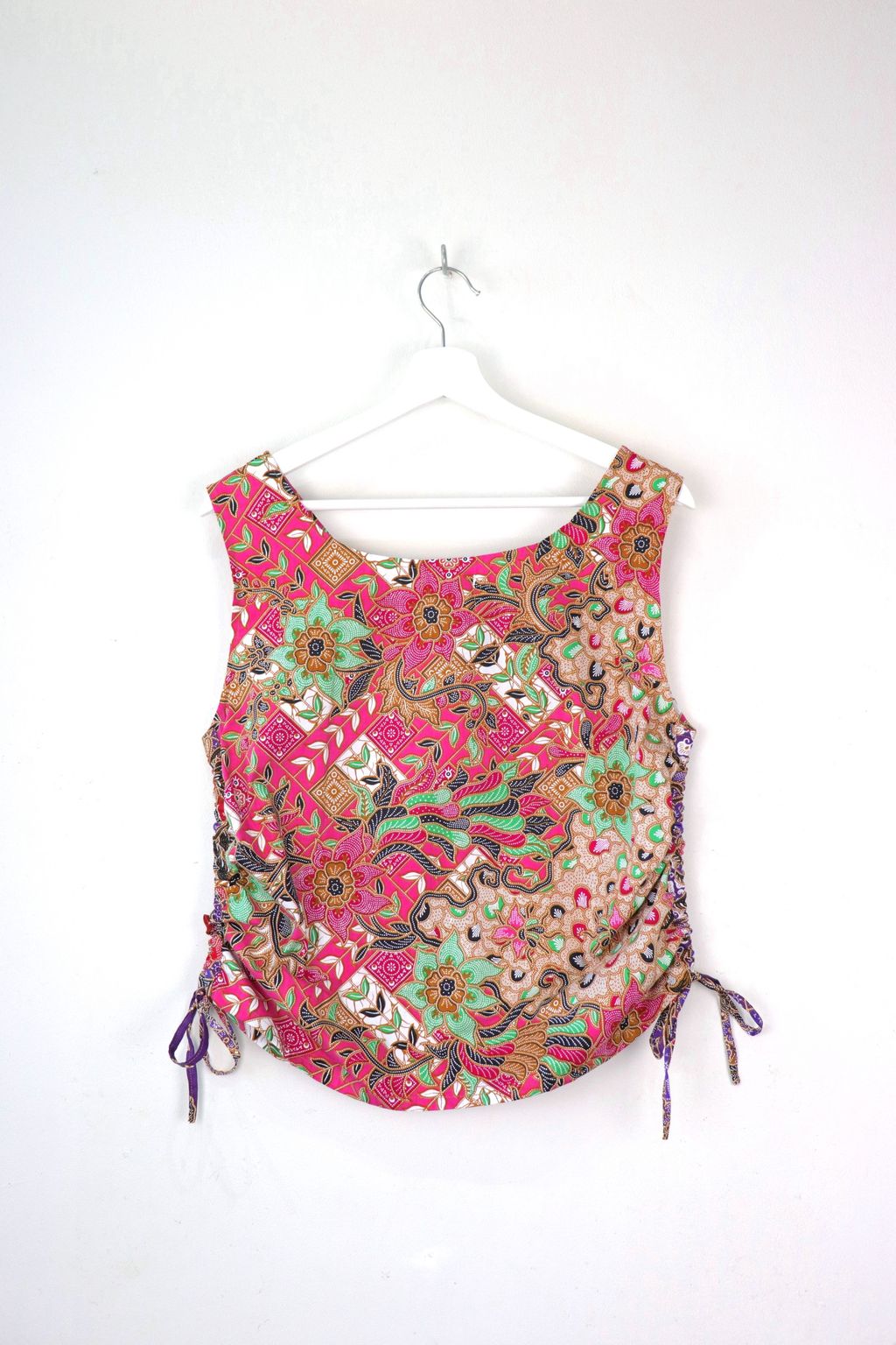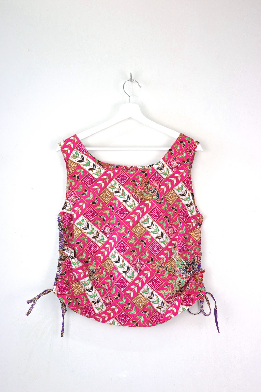 Side Ruched Drawstring Batik Top - Guava Paradise ( M - L )
