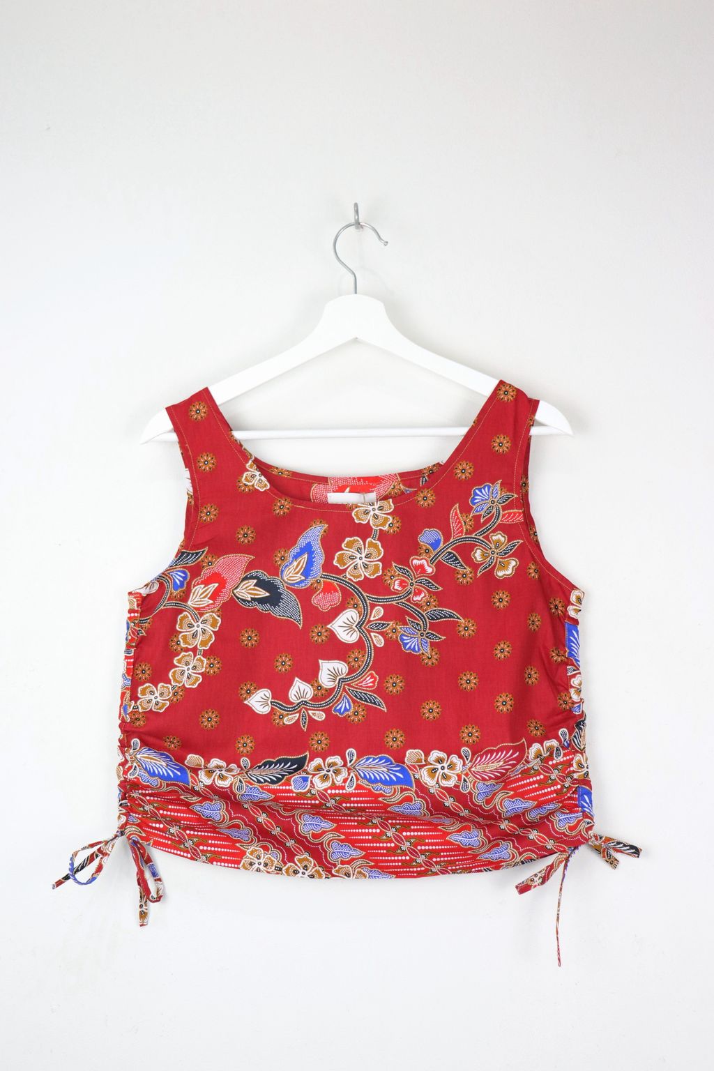 Side Ruched Drawstring Batik Top - Hibiscus Bunch ( S - M )