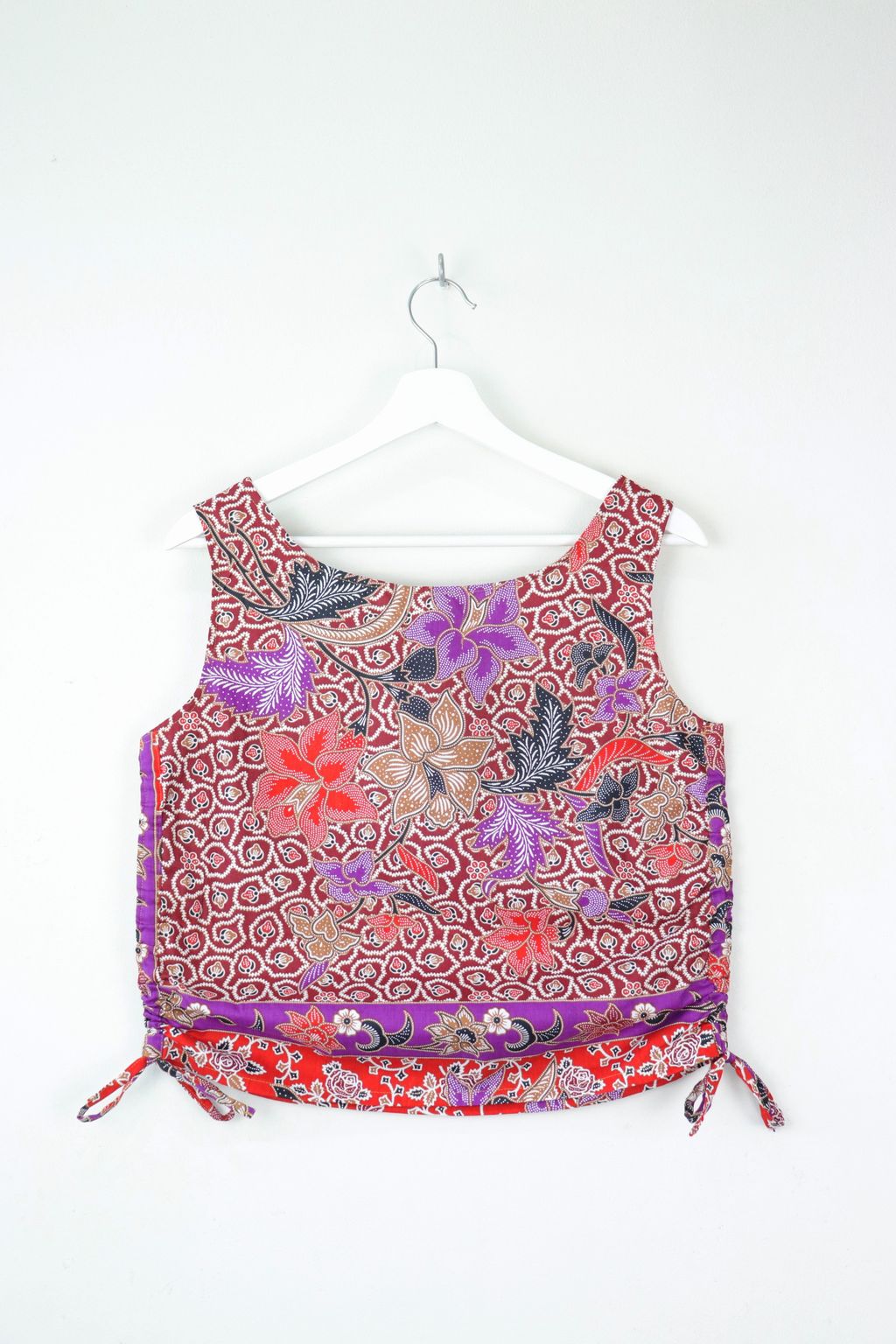 Side Ruched Drawstring Batik Top - Iced Berry Tea ( S - M )