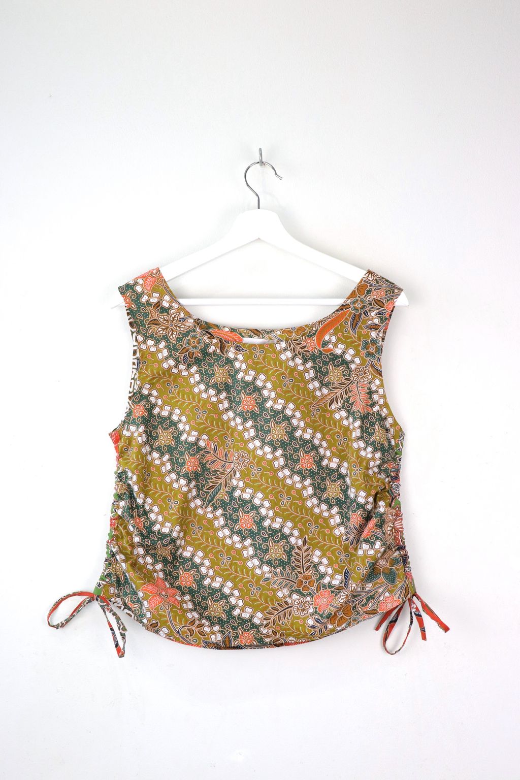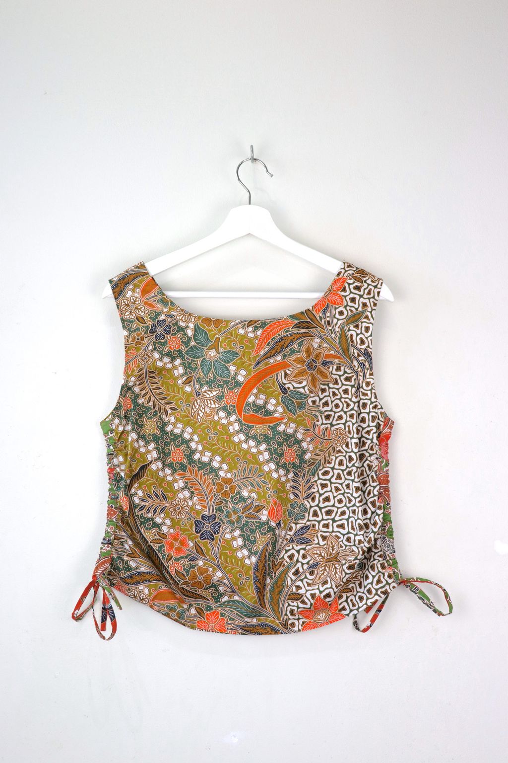 Side Ruched Drawstring Batik Top - Lush Woodlands ( M - L )