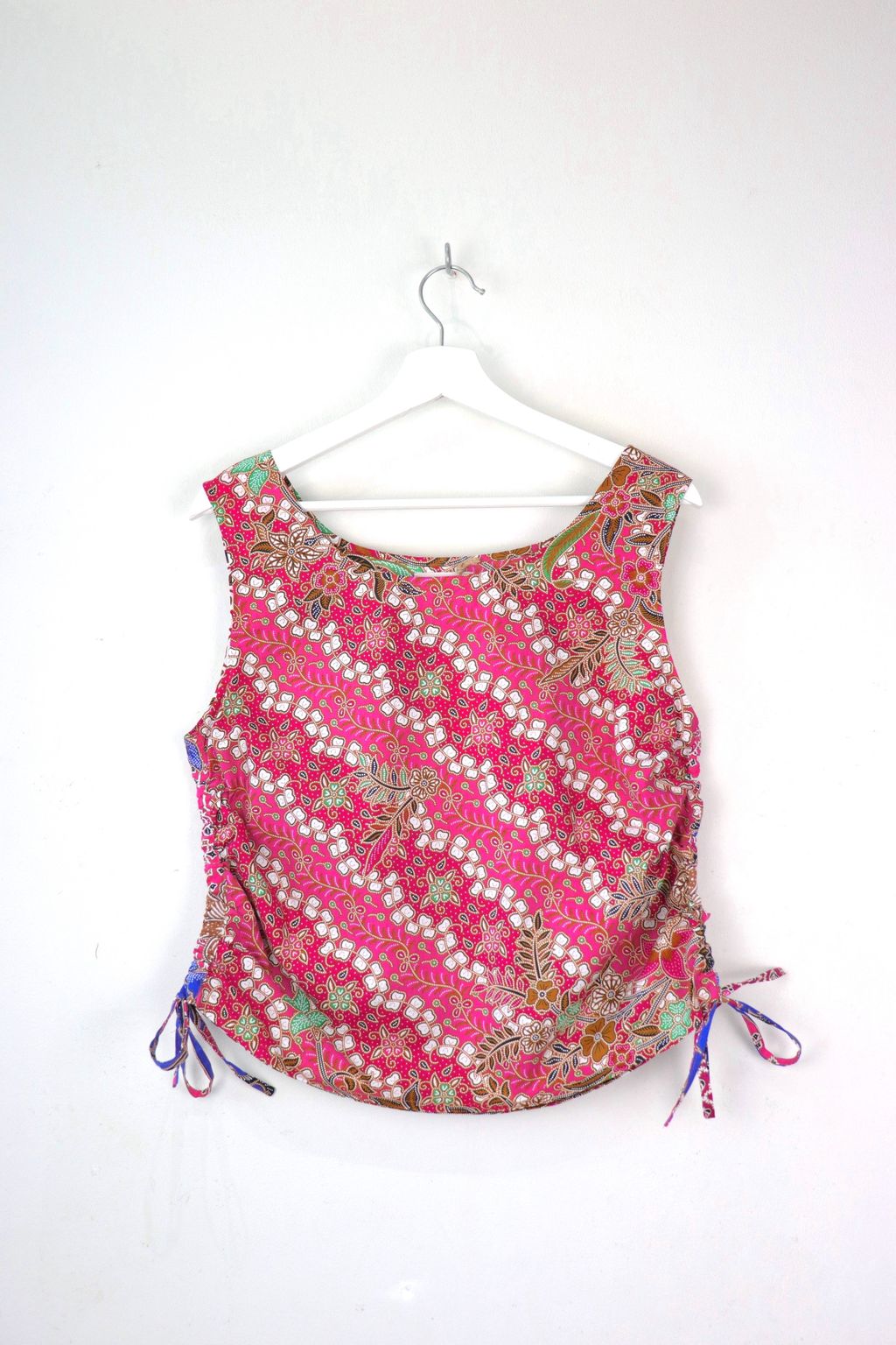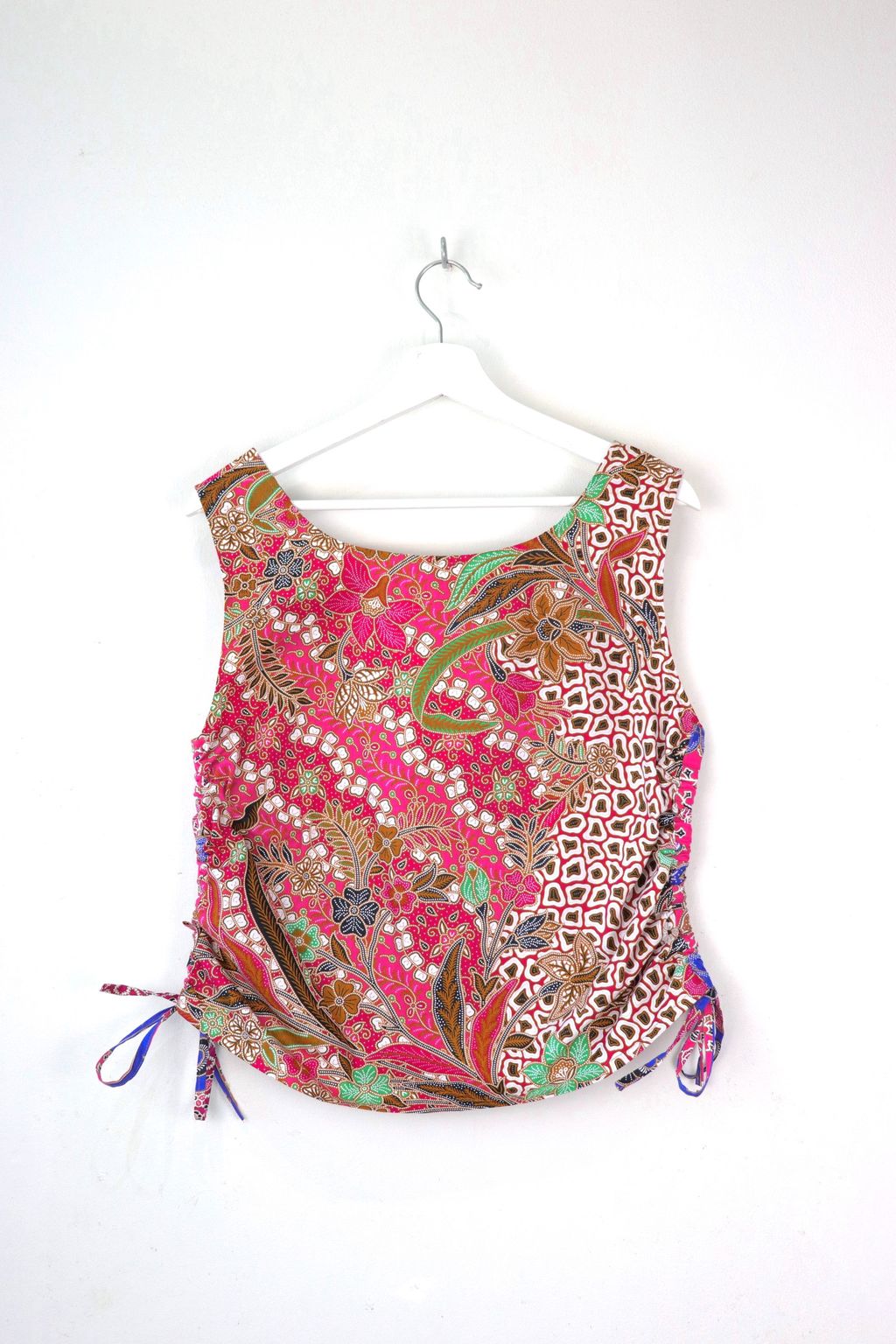 Side Ruched Drawstring Batik Top - Pink Colada ( M - L )