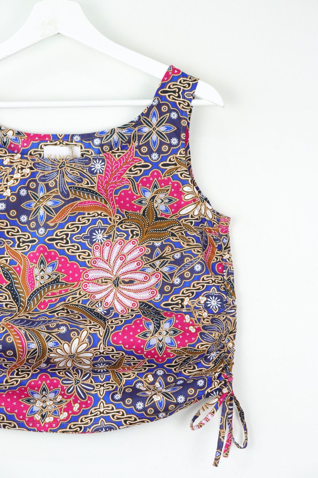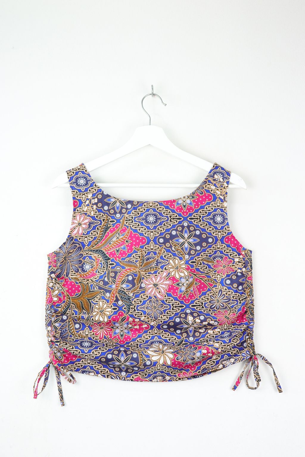 Side Ruched Drawstring Batik Top - Seashell Shore ( S - M )