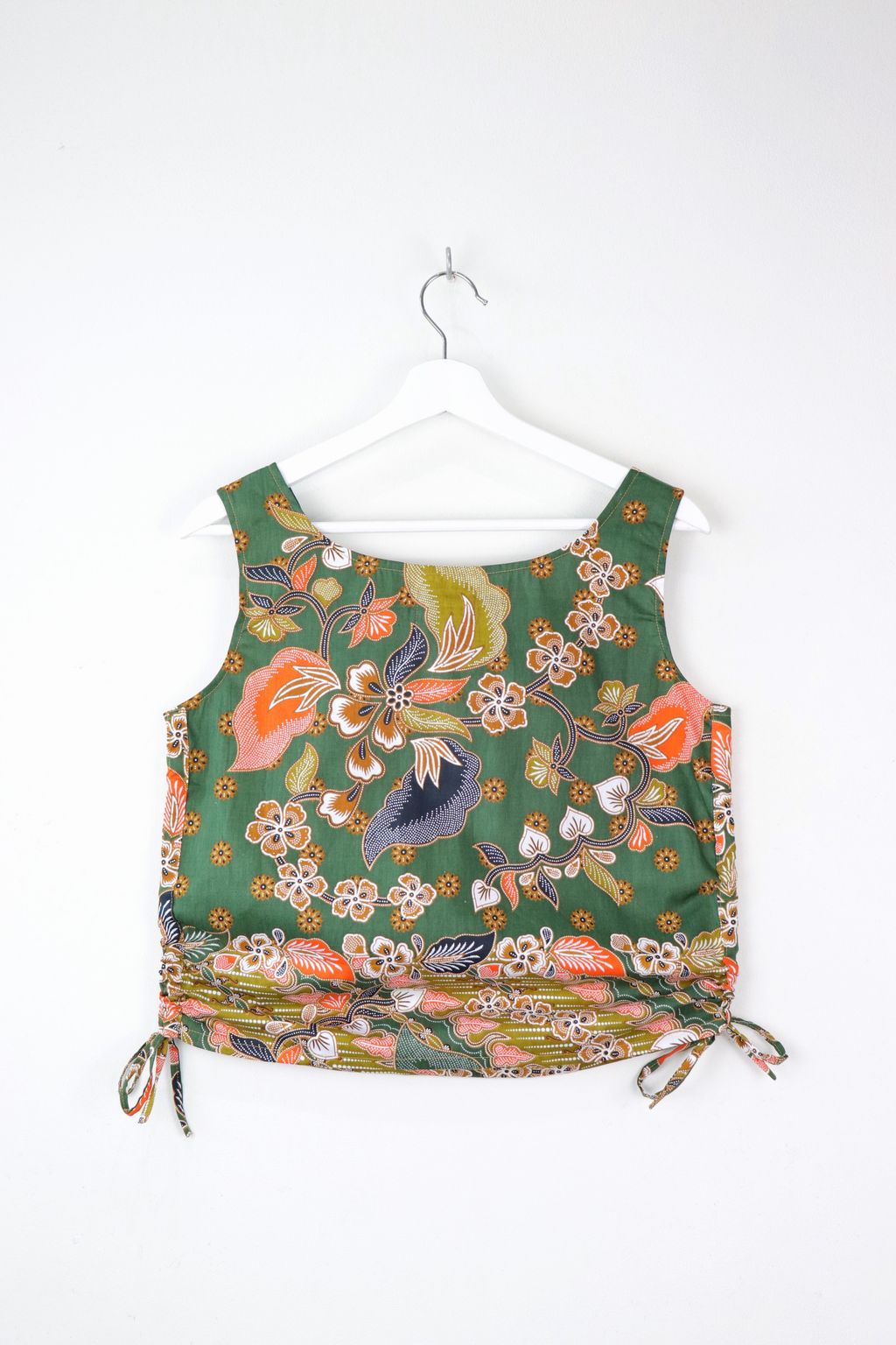 Side Ruched Drawstring Batik Top - Toucan Jungle ( S - M )