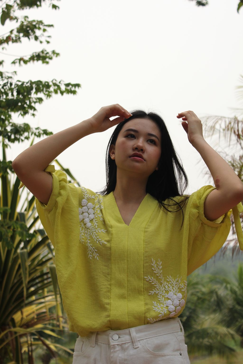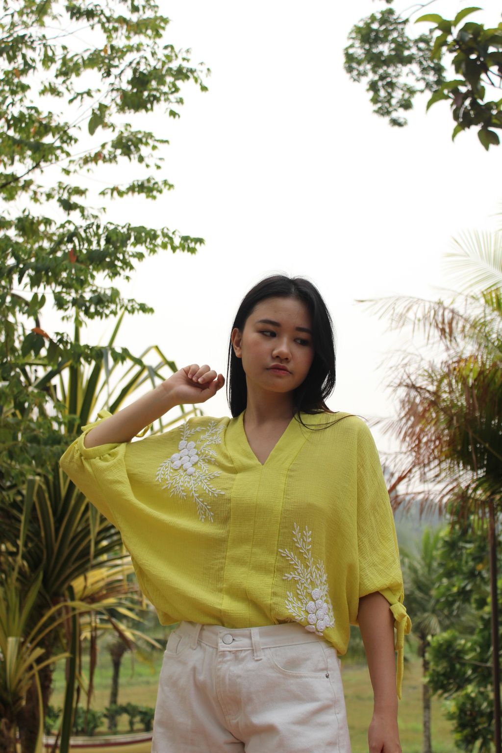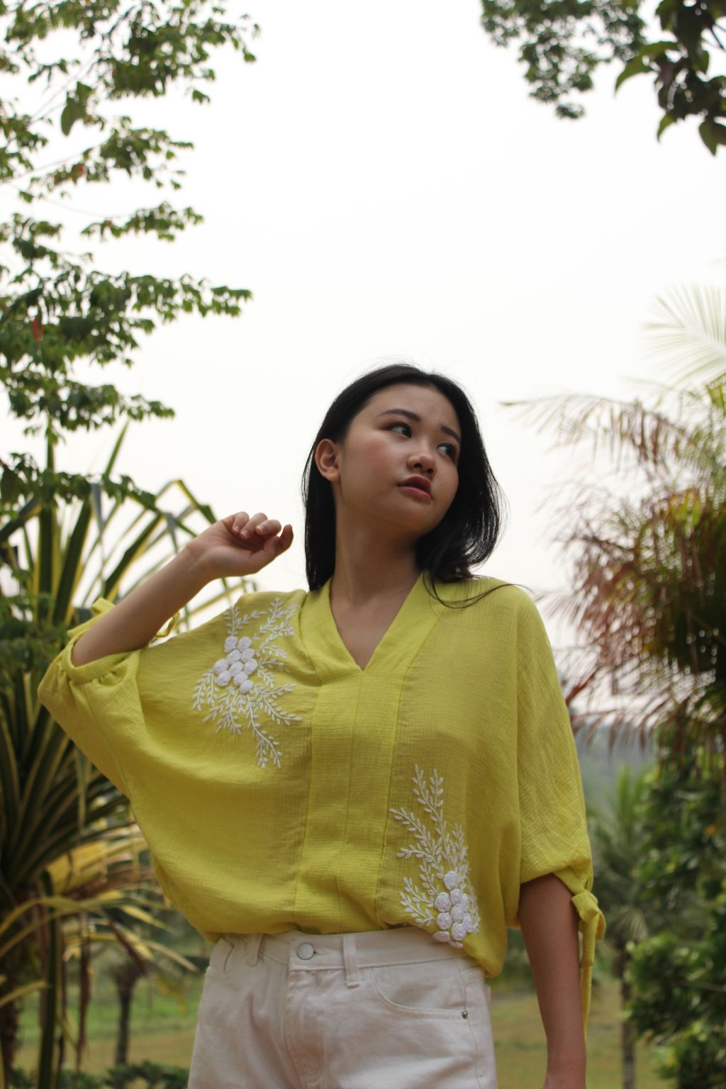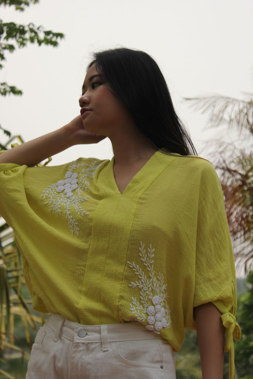 We love how the combinational texture of the silk crepe and 3D effect of the hand embroidered floral bouquet brings so much feel in creating this romantic top. At KANOE we love working with traditional skills and handcrafted art as we see so much beauty in them. We hope you too love and will grow in affection to appreciate these fine art on garments.