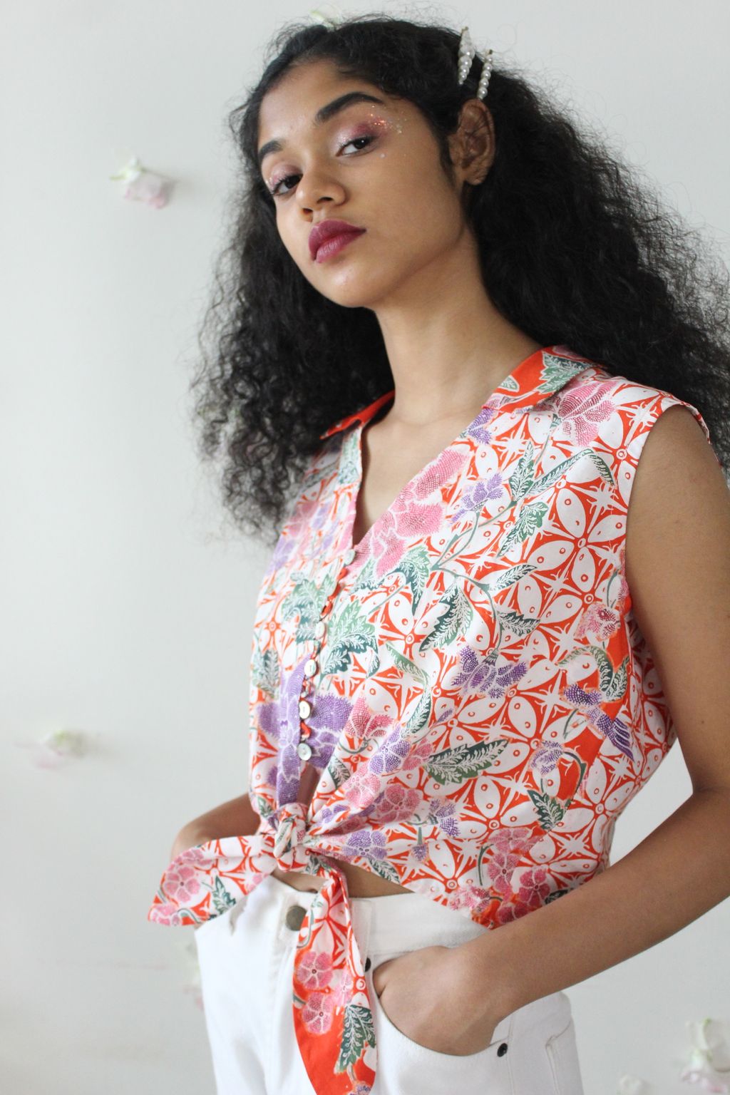 Pastel Sleeveless Vintage Top - Bree ( Handstamped Batik )