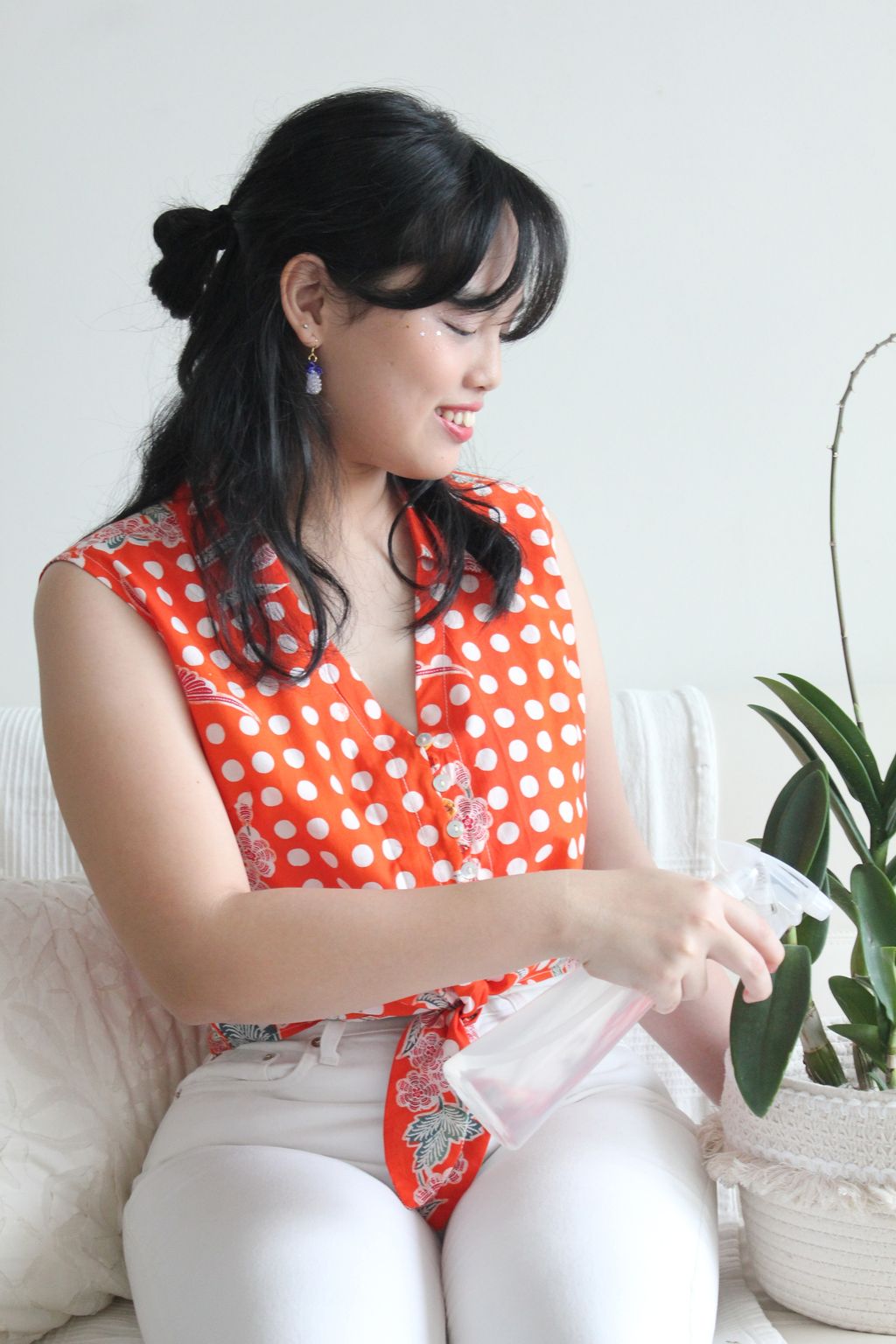 Model Jia is a size L.
