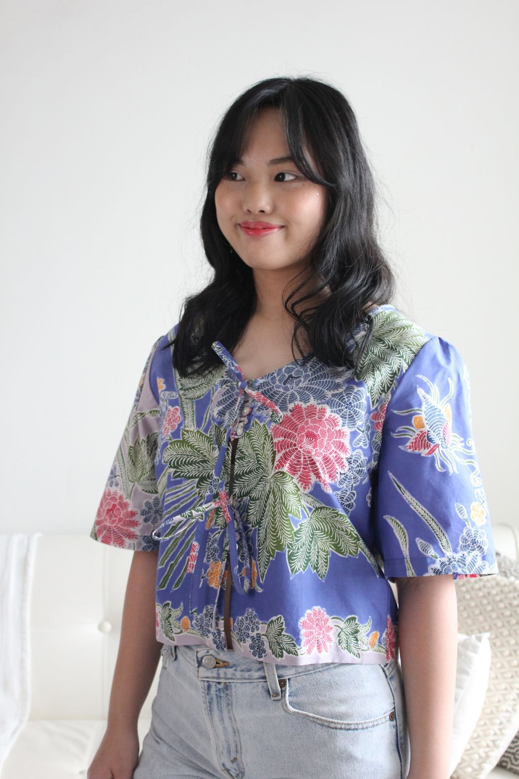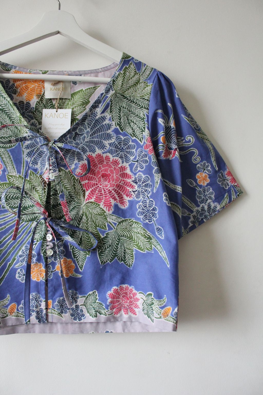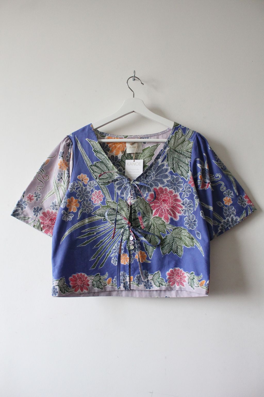These pastel bell sleeve tops are made from intricate hand stamped batik textile. Not one piece alike, you will love how beautiful the colours and print of this batik is made by skilled artisans of centuries of batik making wisdom. These batik come from a region where the batik makers have influence from Chinese and European merchants in which is on display in the motifs and colours of the batik.