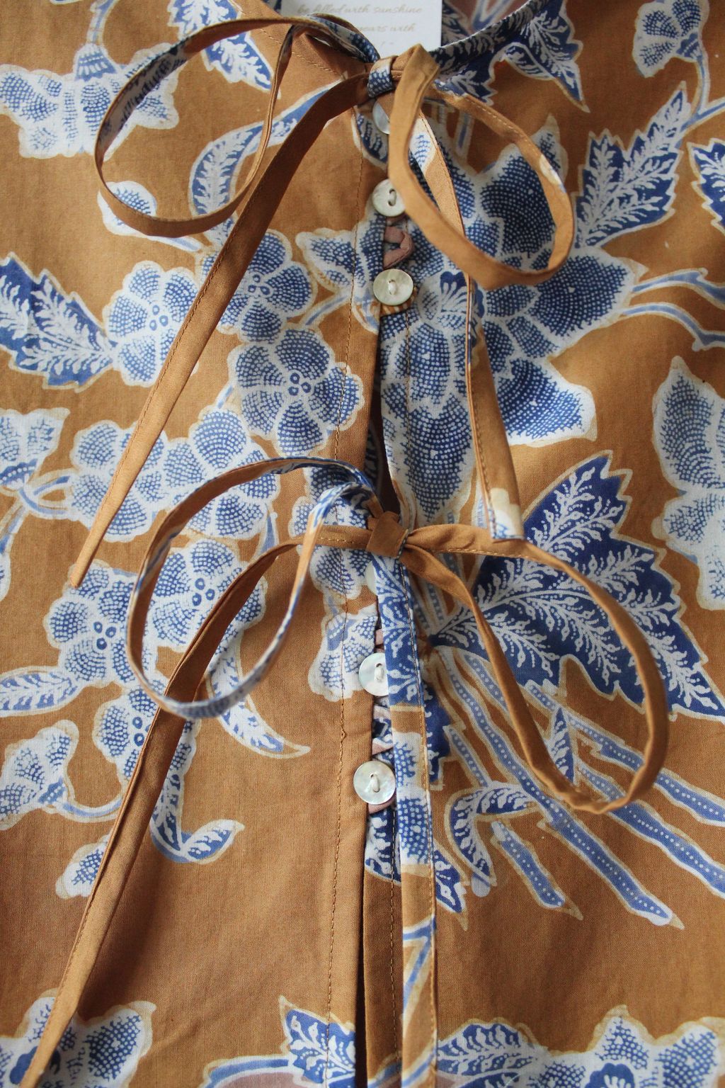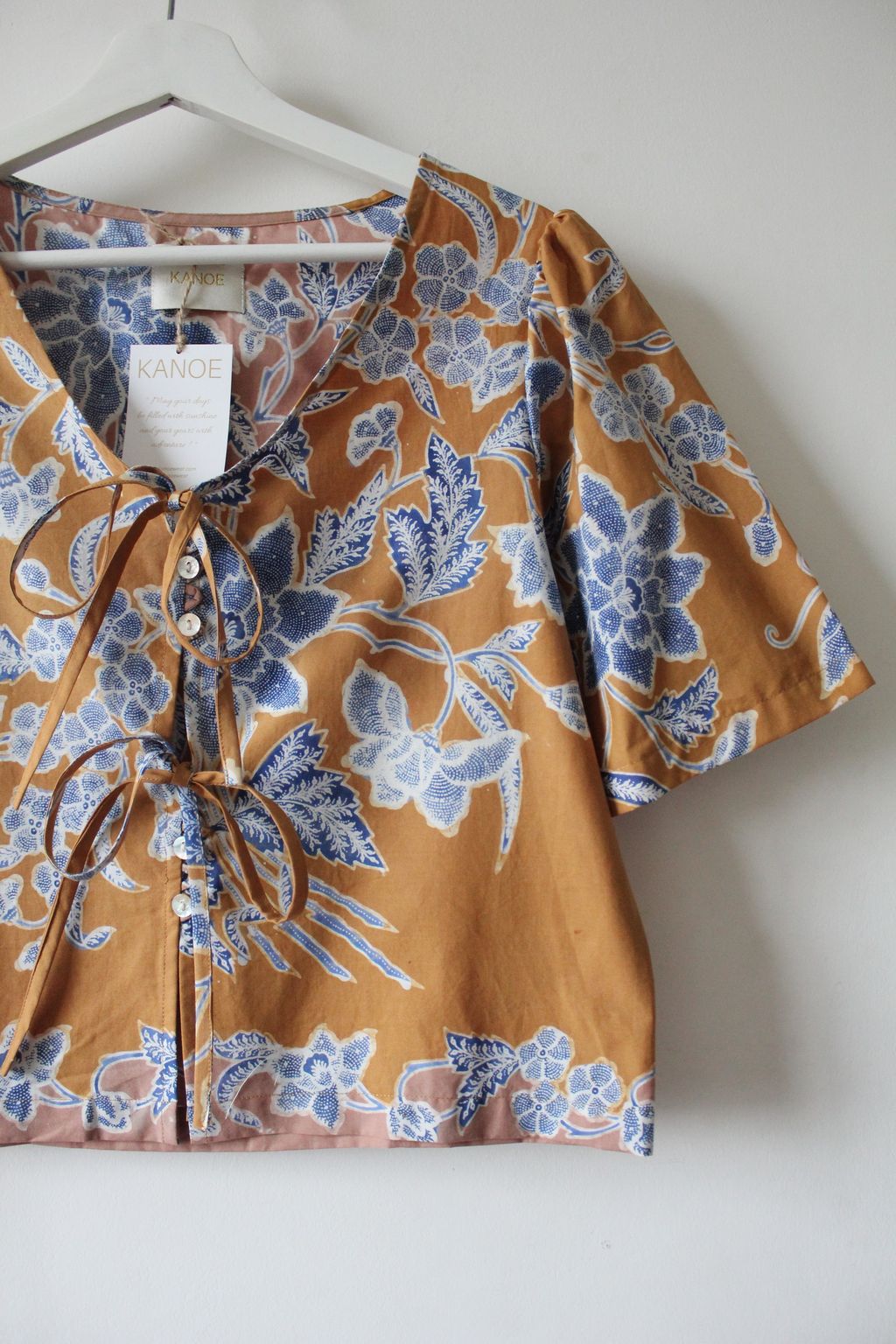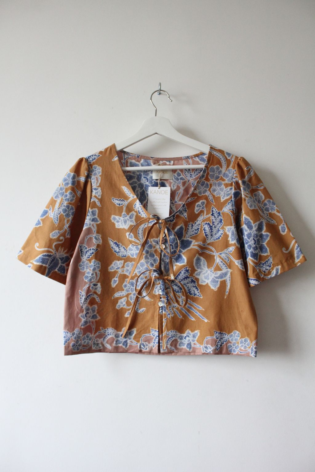 These pastel bell sleeve tops are made from intricate hand stamped batik textile. Not one piece alike, you will love how beautiful the colours and print of this batik is made by skilled artisans of centuries of batik making wisdom. These batik come from a region where the batik makers have influence from Chinese and European merchants in which is on display in the motifs and colours of the batik.
